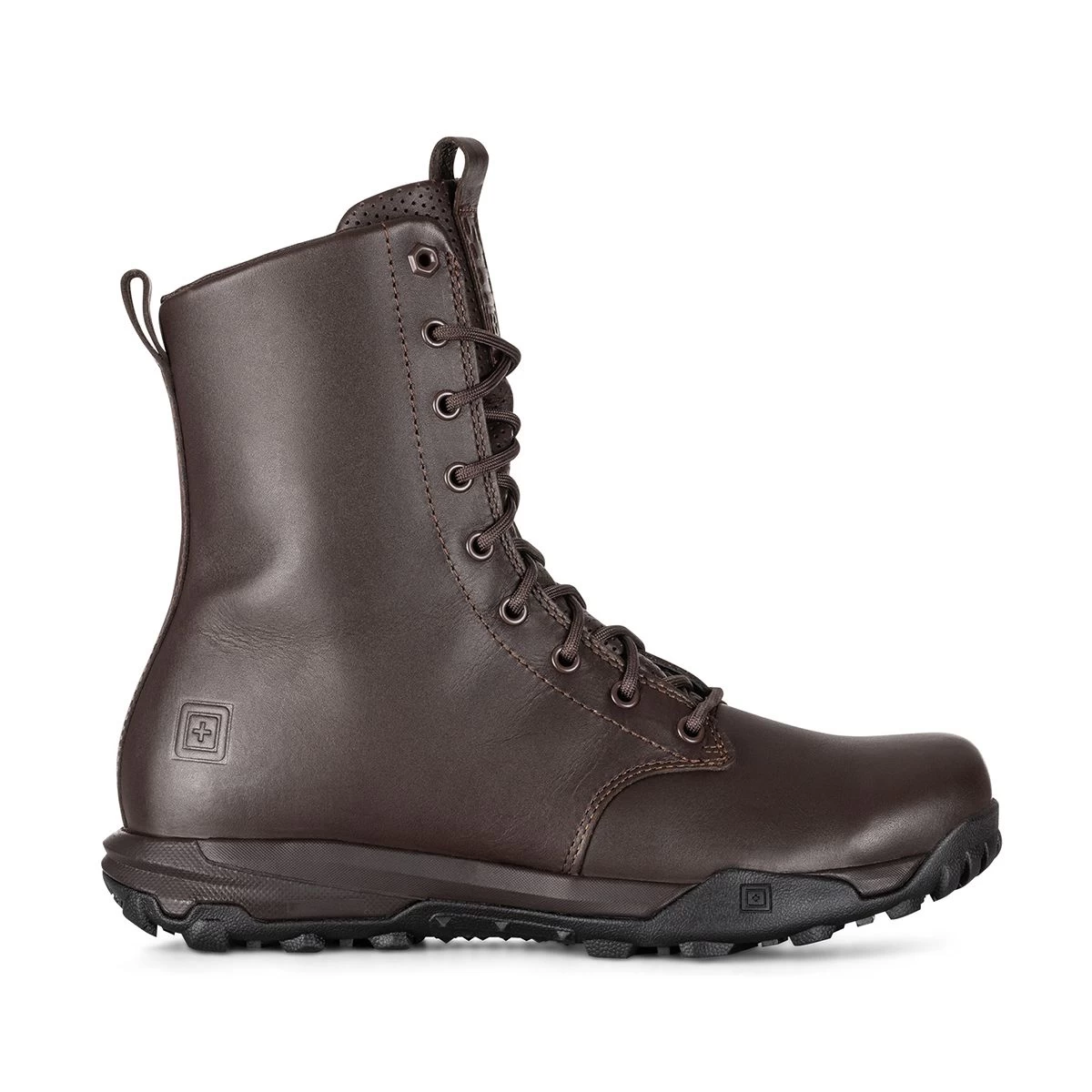 The 5.11 A/T 8 HD boot in Black Coffee brings all the features you demand in tactical footwear and adds touches rarely seen in a professional boot. The 5.11 A/T 8 HD is ISO 20347:2012 OB FO HRO SRA certified. The perforated tongue adds breathability and air flow, critical to keeping you cool during a tough mission. A heat-reflective strobel sock reflects heat from pavement and concrete away while a new, infrared refracting leather drops surface temperature. Combined with the 5.11 A.T.L.A.S. All Terrain Load System, A.T.L.A.S. plate, and high-traction outsole with an Ortholite footbed and pulling those long shifts has never been easier on your feet.