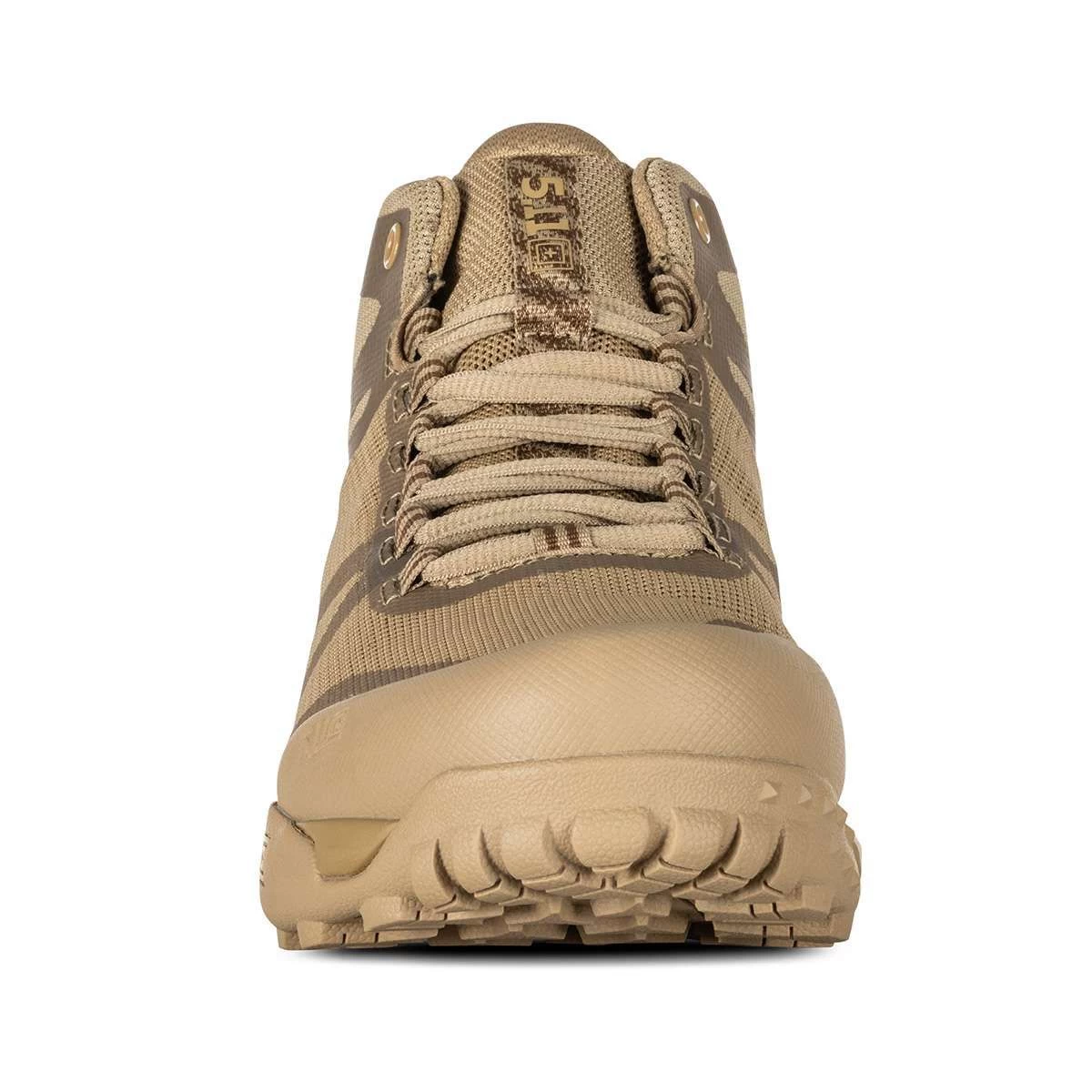 This is the 5.11 A/T Mid Boots (Coyote), featuring 3D molded TPR toe and heel protection, a welded/mesh upper, and high performance, high traction outsole, the All Terrain Load Assistance System (A.T.L.A.S.) will mitigate the rigors of a heavy load bearing job (and in no small way, either). The mids were developed to work with your “work weight”. Work longer, with less stress even when you’re loaded down.