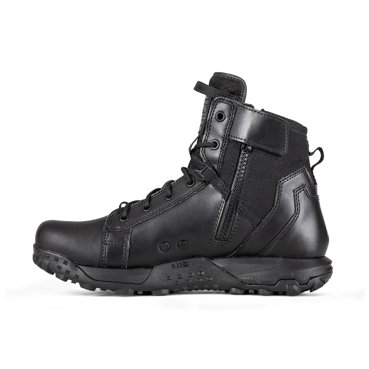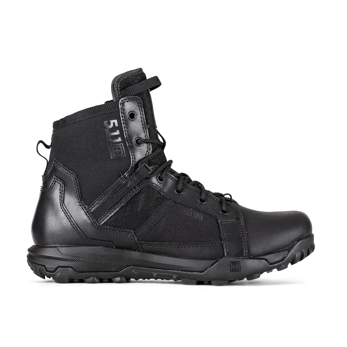 The 5.11 A/T 6” Side Zip boot is a performance boot built from the sole up to increase performance. The All Terrain Load Assistance System (A.T.L.A.S.) is a force multiplier for those who carry heavy weight on long shifts. The boots were developed to work with your “work weight”. This boot is constructed of nylon with high abrasion air mesh, a water resistant leather upper, and because so many professional jobs demand it – a polishable toe. Additional features include a YKK side zipper and a locking ankle eyelet, and a high traction outsole so you can take those corners in a foot pursuit or run headlong into whatever challenge you’re up against.