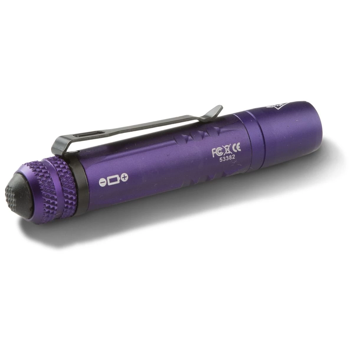 The 5.11 EDC PLUV 1AAA flashlight produces a high precision ultraviolet light with a runtime of 6 hours, 40 minutes. This specific task light is ideal for users who need to authenticate identification and currency. It also can detect hidden fluids, leaks, and troublesome scorpions. Tuck it in your pocket or clip it to your belt loop and stay ready.