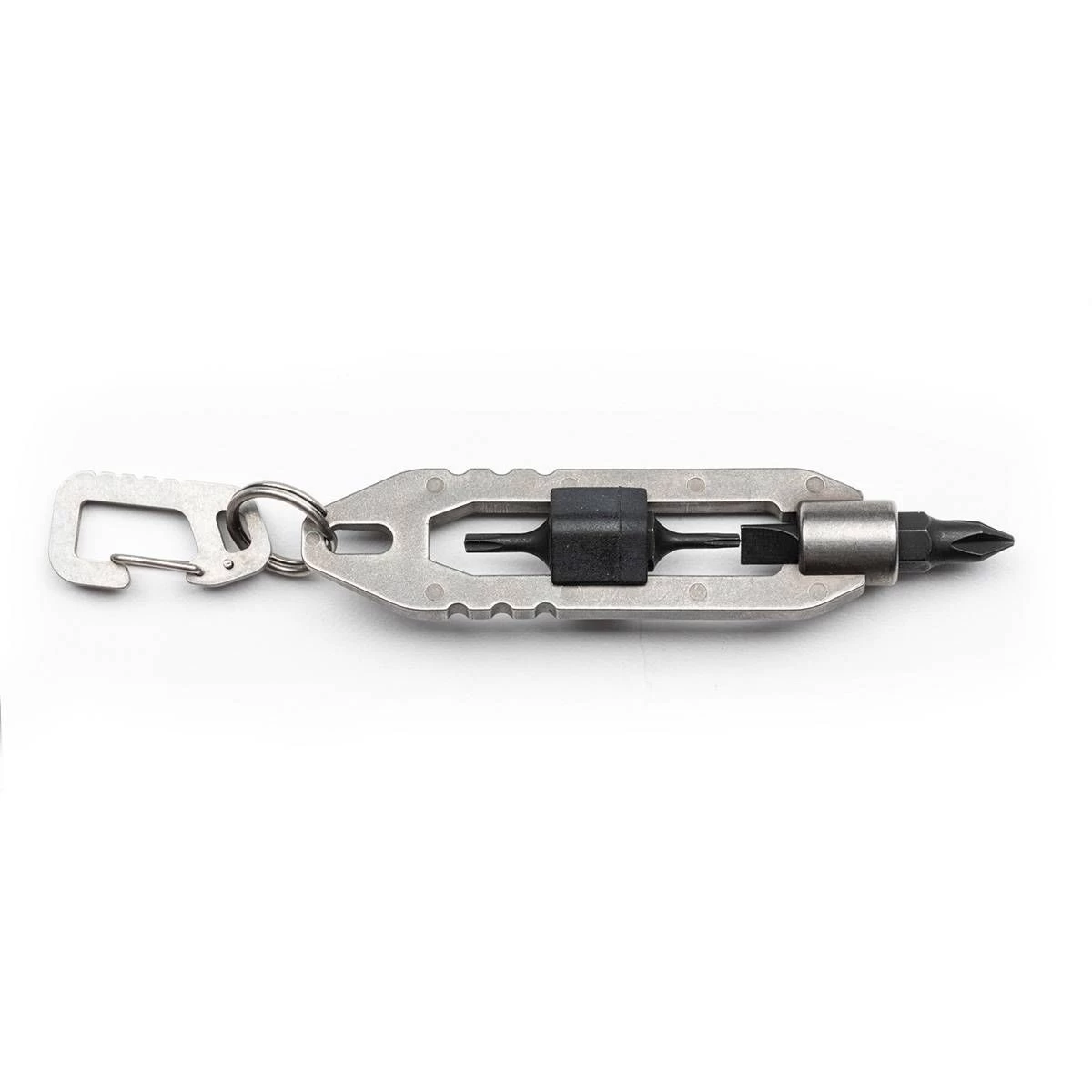 All gearheads face the same problems. Bolts and screws always work loose at the worst possible times and the right tools are never accessible. Respond with a 5.11 EDT Hex, which comes with four tip fastening options in a compact keychain carry form factor. Use the Phillips and slotted screwdriver tips for all those every day tasks, then deploy the T6 and T8 Torx heads, ideal for knife tune ups, optics, and electronic devices. The two headed bits are secured in place with ball detent feature, while the spare bit is stored in the center holder. Includes a split ring and micro Hardpoint carabiner for connection options.