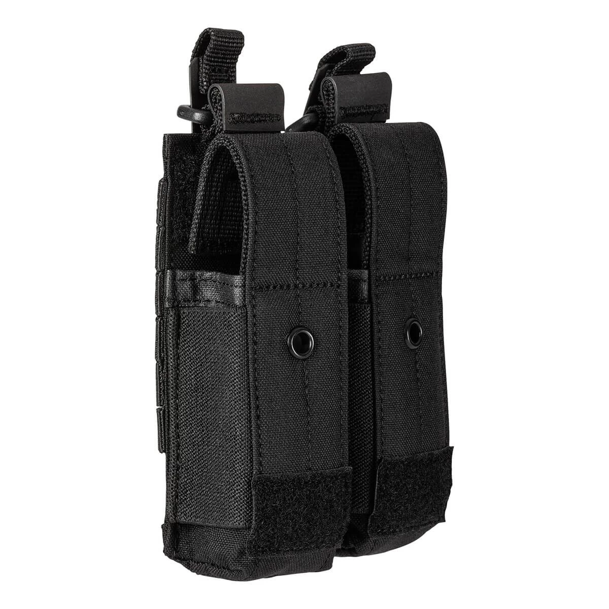 The 5.11 Flex Double Pistol Mag Cover Pouch has Flex-HT™ ½” stacked webbing on the back for mounting versatility and Flex-HT™ ¾” TPU coated straps for easy weaving to all platforms. The construction includes a drain hole in the bottom panel, a double layer of 500D nylon on the front and bottom for extra durability, and a Duraflex® G.C. snap for a secure hold. Our Pouch Bungee Kit (sold separately) can be added for additional retention options. The sides are designed with elastic compression to keep your mags secure and ready to go when duty calls.