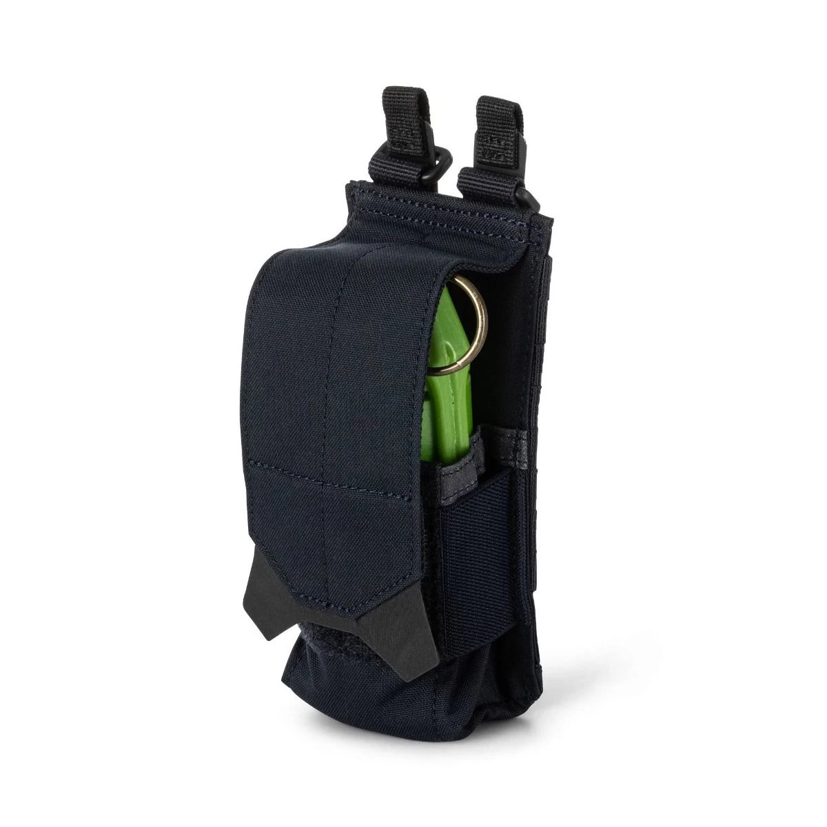 The 5.11 Flex Flash Bang Pouch fits standard size flash bang grenades and has a cover flap with extra-wide hook and loop closure.