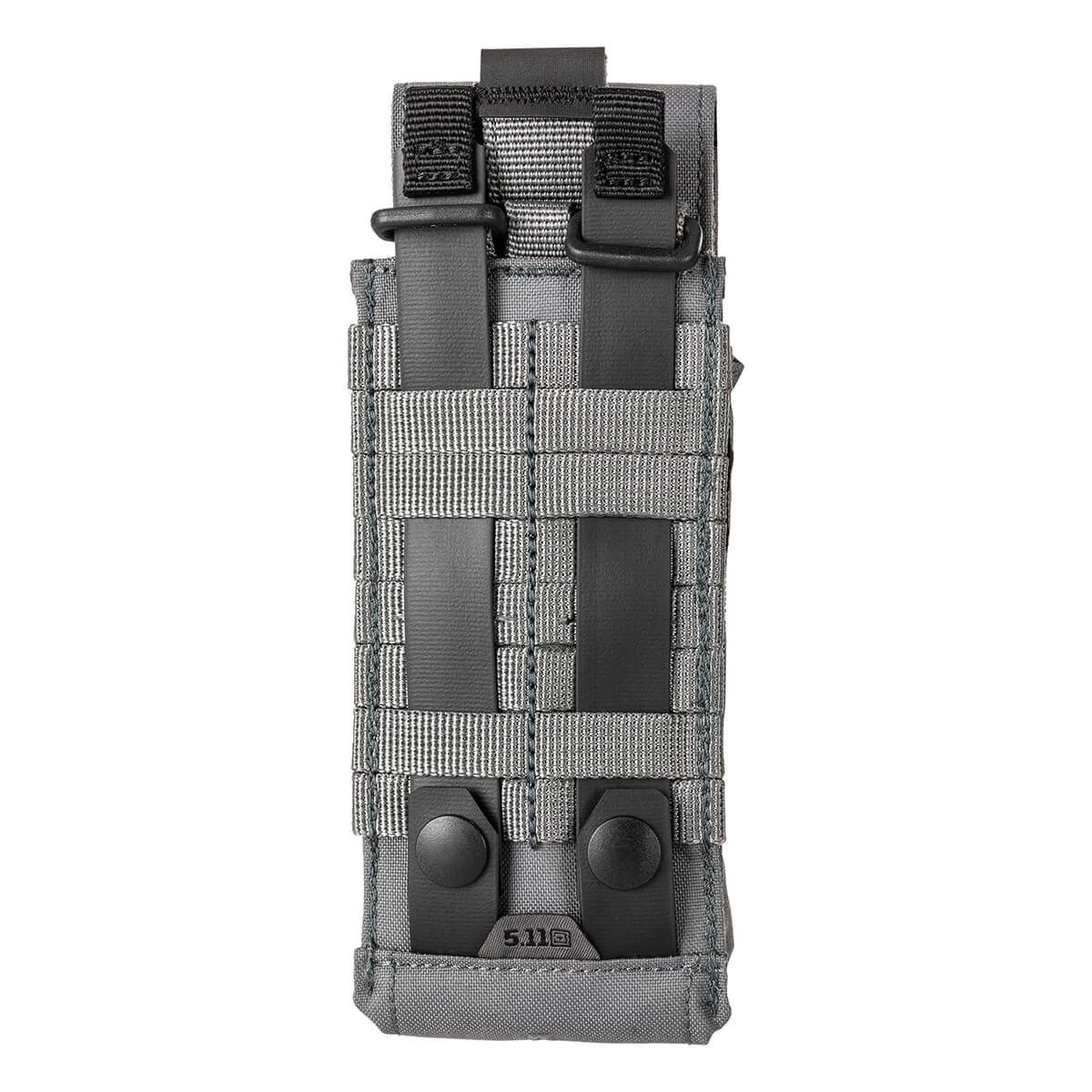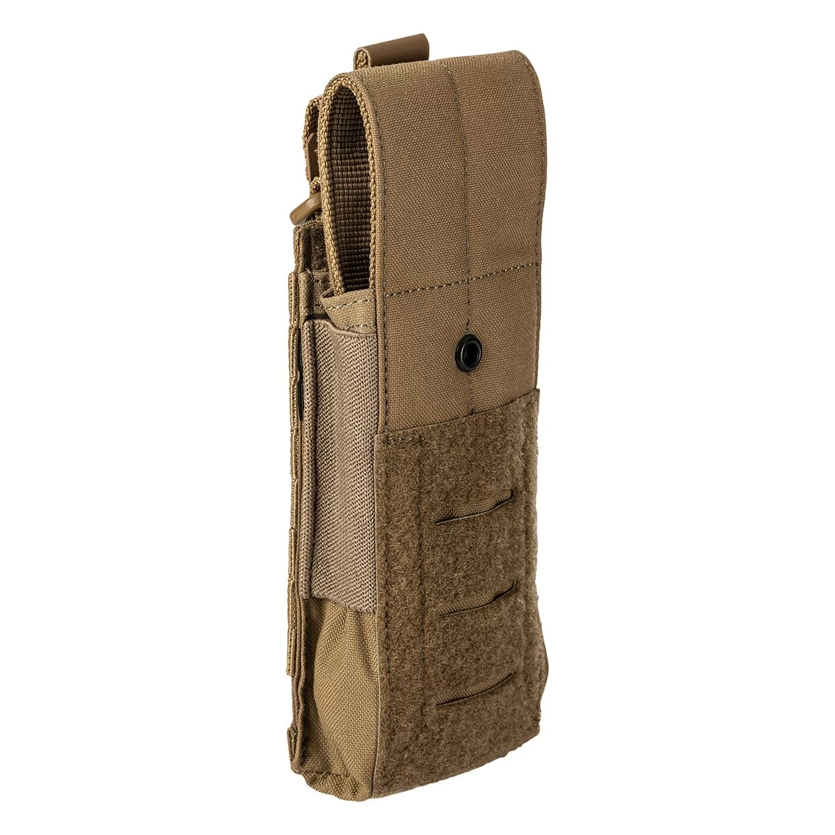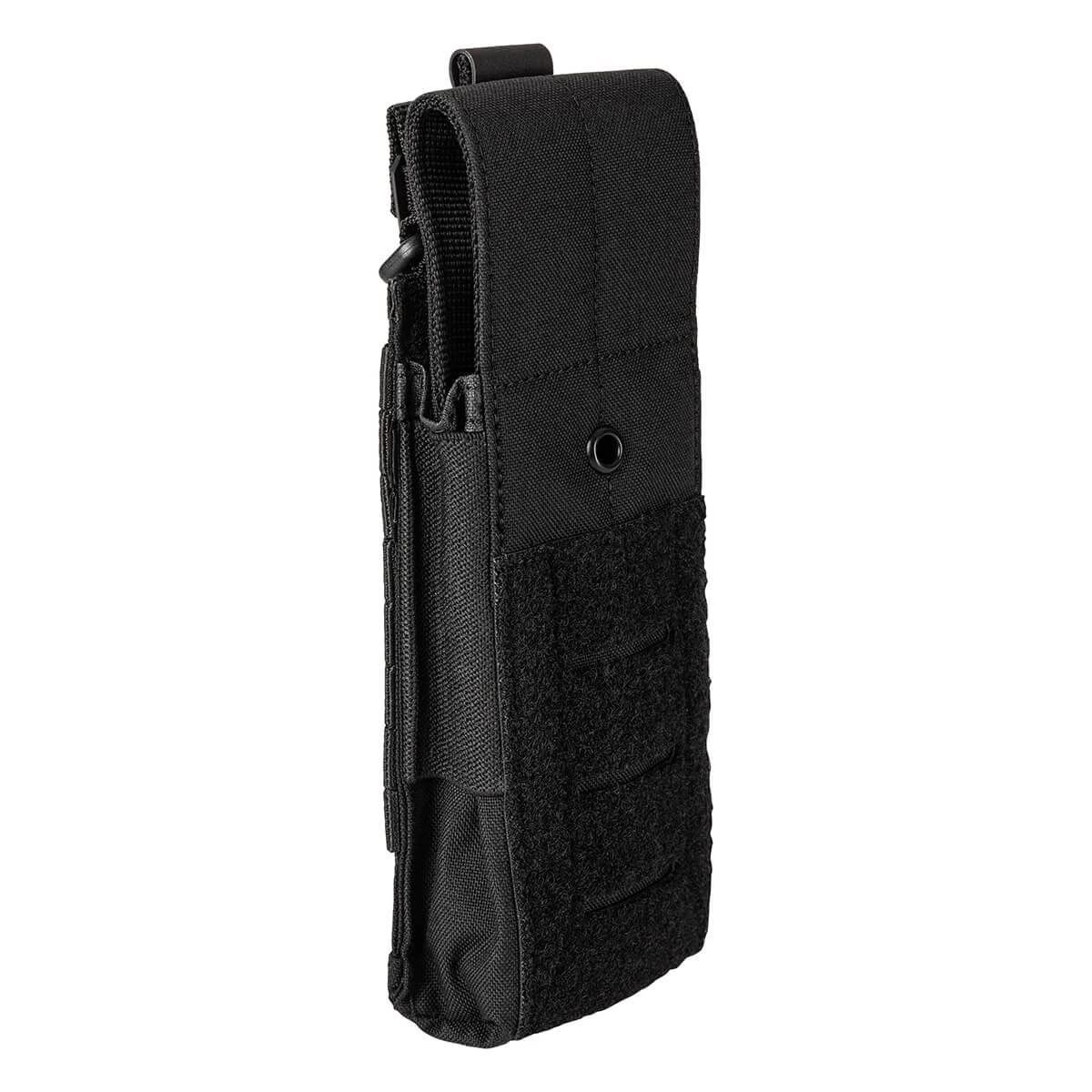The 5.11 Flex Single AR Mag Cover Pouch has Flex-HT™ ½” stacked webbing on the back for mounting versatility. Flex-HT™ ¾” TPU coated straps are more durable, waterproof, and make it easy to weave to any platform. Speaking of durability, this pouch has a double layer of 500D nylon and webbing on the front and bottom and a Duraflex® G.C. snap. 5.11’s Pouch Bungee Kit (sold separately) can be added for additional retention options. The sides are designed with elastic compression and the webbing cover has a Hypalon® pull tab for a secure hold and easy draw.