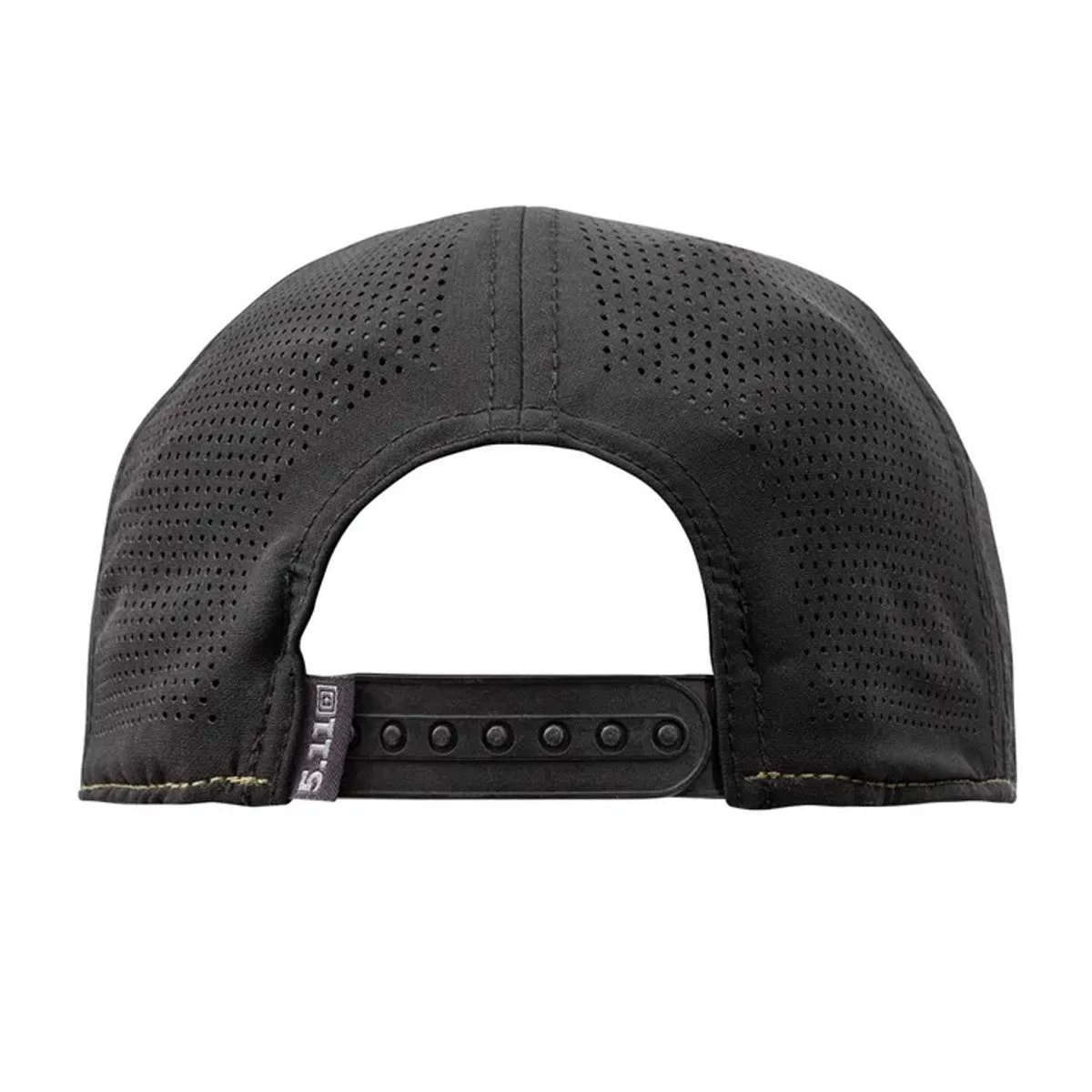 Hit the ground running in the Icon Vent-Tac™ Cap. This ultra-performance six-panel cap is constructed from rugged four-way stretch, double-weave fabric with Enduro-Flex™ properties and a coating that repels moisture. Perforated back panels with Vent-Tac™ features quickly funnel heat away from your head. Embroidered eyelets at the crown maximize ventilation. The anti-odor, wicking jersey sweatband includes a foam insert to ensure all-day comfort. Buckram-lined front panels add structure that will endure years of wear. The standard curve brim is finished with eight rows of stitching for durability. The snapback closure on the rear provides the perfect fit. A 5.11® logo patch on the front and an embroidered loop patch on top finish everything out. Throw on the Icon Vent-Tac™ Cap and get some.