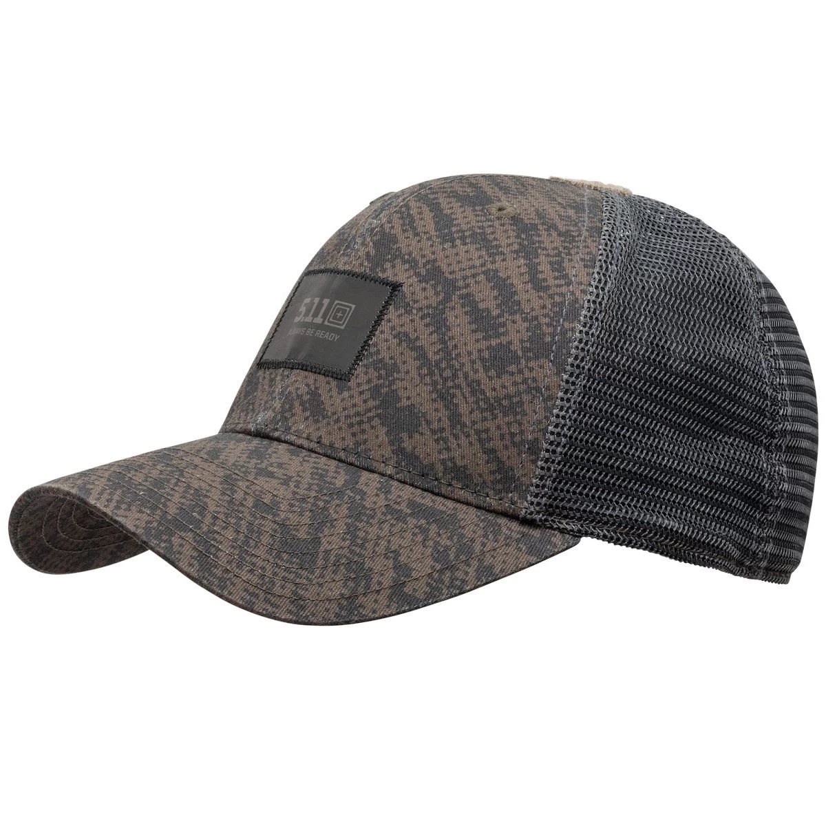 The 5.11 Legacy Box Trucker Cap in Major Brown features a woven 5.11 patch at the centre front and a breathable polyester mesh on the sides and rear. Cap has snapback adjustment at the rear while the front features structured front panels.