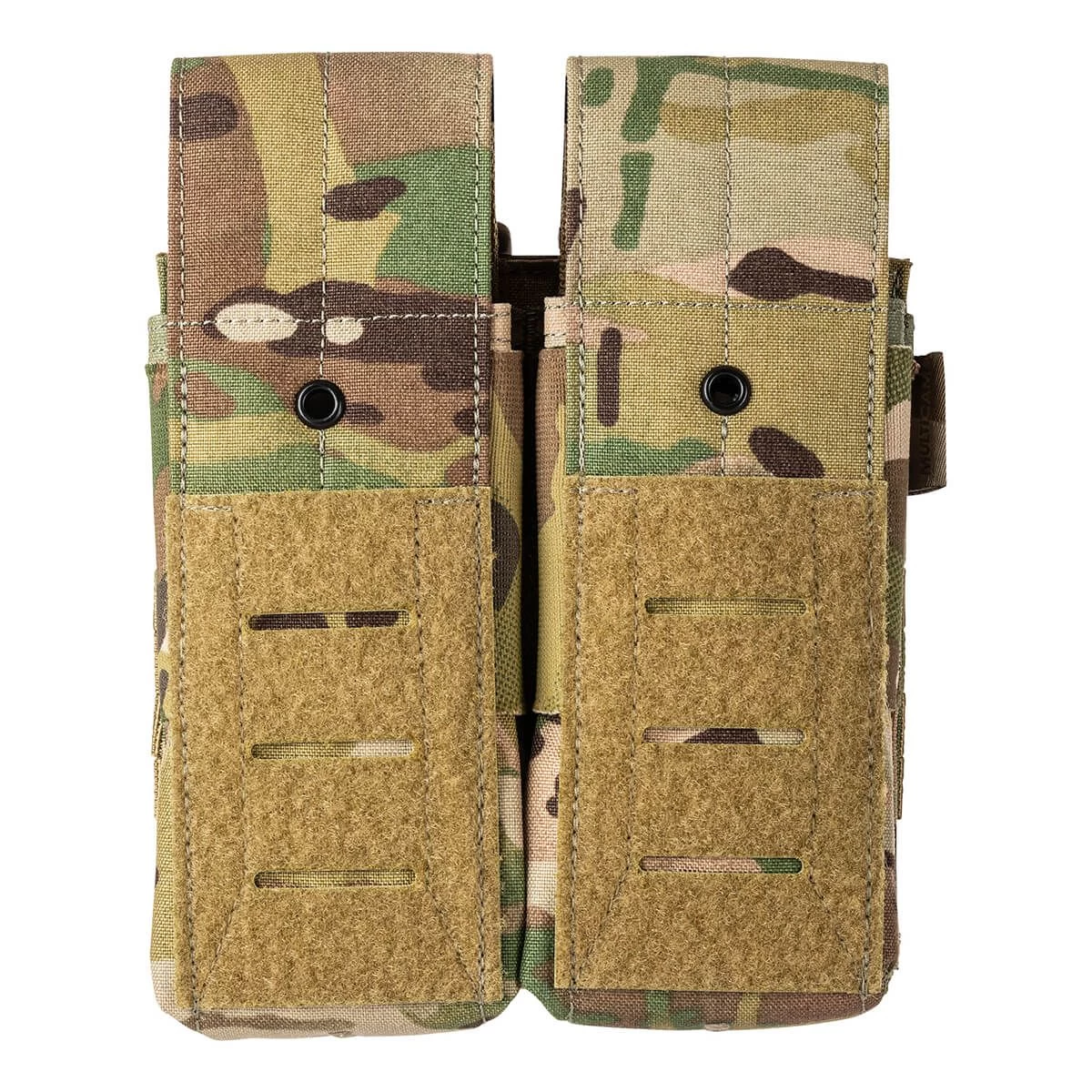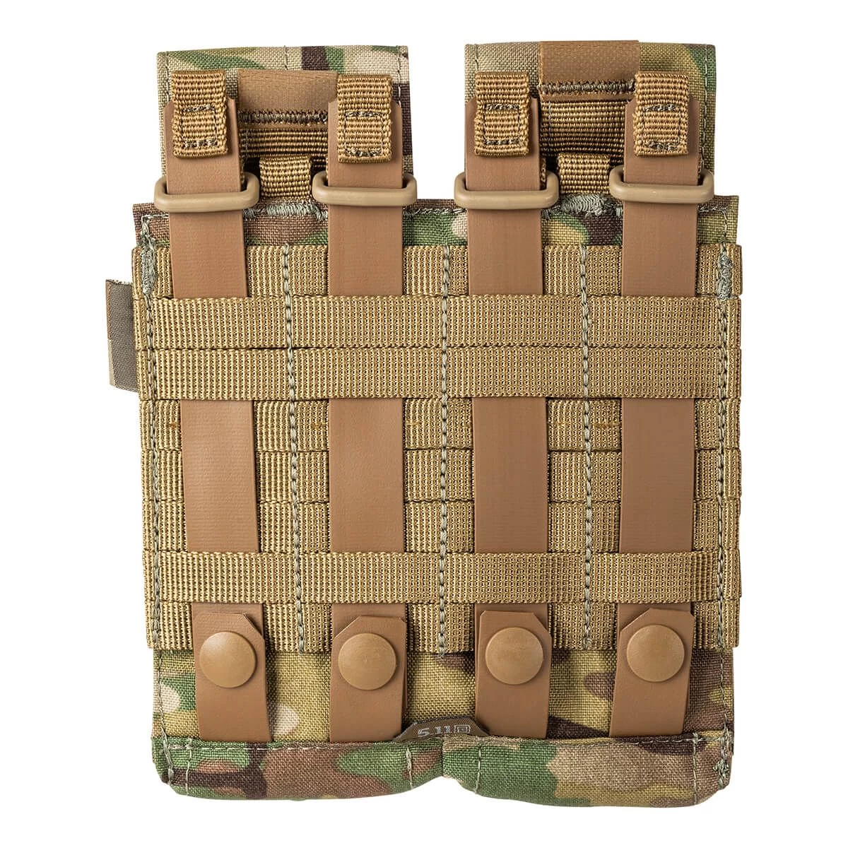 The 5.11 MultiCam Flex Double AR Mag Cover Pouch for two times the fun. Built with Flex-HT™ technology for mounting versatility and easy weaving to all platforms. Made from tough 500D nylon including a double layer on the front and bottom for increased durability. Alternatively, the Pouch Bungee Kit (sold separately) can be added by securing the cover flap on the front of the pouch. The fine details have not been forgotten with a drain hole in the bottom panel, Duraflex® G.C. snap, and a 500D nylon webbing cover with a Hypalon® pull tab. The sides are designed with elastic compression that allows for quick and secure mag changes.