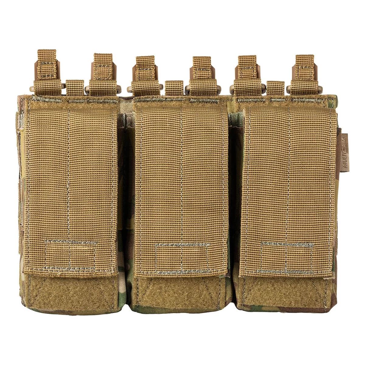 The 5.11 MultiCam Flex Triple AR Mag Cover Pouch. Yeah, you heard right. Three mags at the ready when every shot counts. Equipped with Flex-HT™ technology for mounting versatility and easy weaving to all platforms. The waterproof TPU coated straps and the double layer of 500D nylon on the front and bottom add extra durability. 5.11’s Pouch Bungee Kit (sold separately) can be added for additional retention options. The fine details have not been forgotten with a drain hole in the bottom panel, Duraflex® G.C. snap, and a 500D nylon webbing cover with a Hypalon® pull tab. The elastic compression sides hold all your mags in place and makes for an easy change when you’re empty.