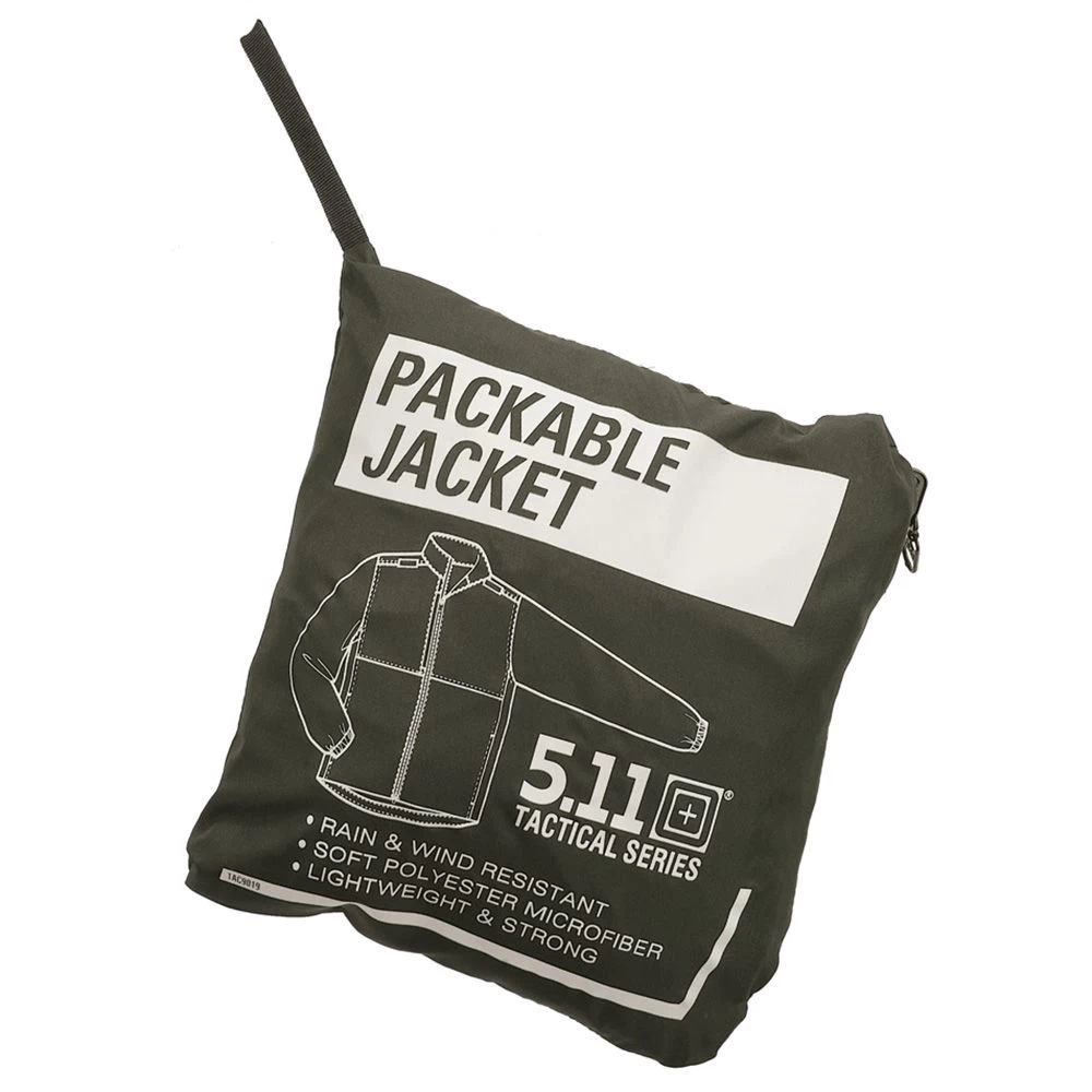 5.11’s Packable Jacket packs into its own convenient pouch and is easily stowed in your vehicle or gear bag.