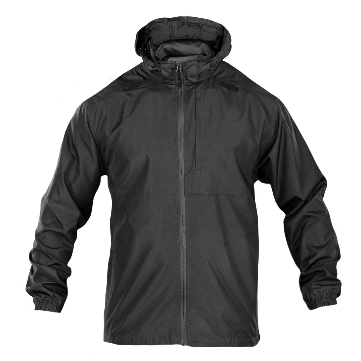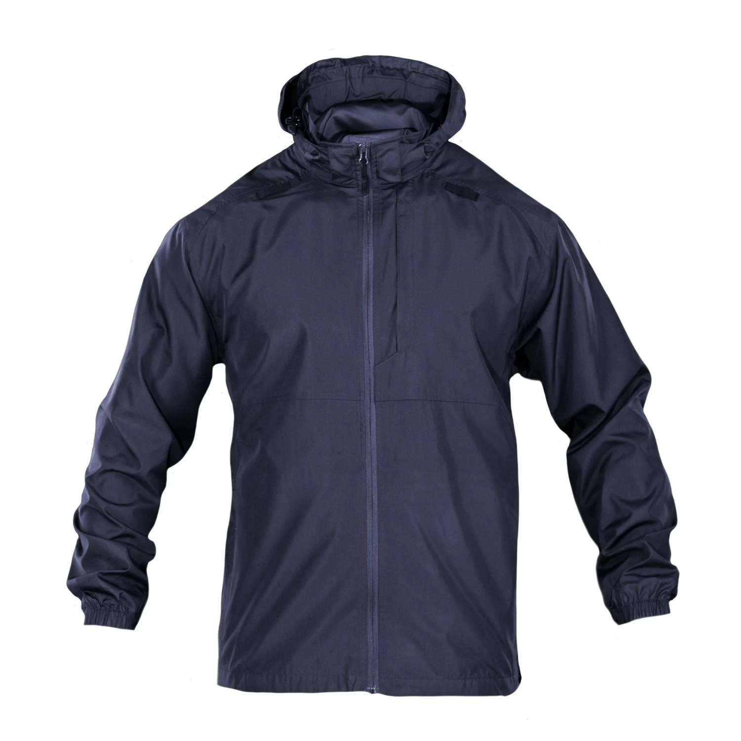 The 5.11 Packable Operator Jacket is perfectly suited for use in rapidly changing climates or as a backup duty wear rain shell. It comes with a convenient carry pouch and stows easily in your boot, patrol bag, or locker. Crafted from sturdy, lightweight microfibre fabric, this packable polyester jacket offers superior protection against moisture and weather while remaining lightweight and comfortable. Additional features include pass-through pockets for quick access to a sidearm, a hidden document pocket at the chest, a removable hood with an integrated nylon drawcord, twin handwarmer pockets, mic loops at each shoulder, and elastic sleeve cuffs for a snug fit.