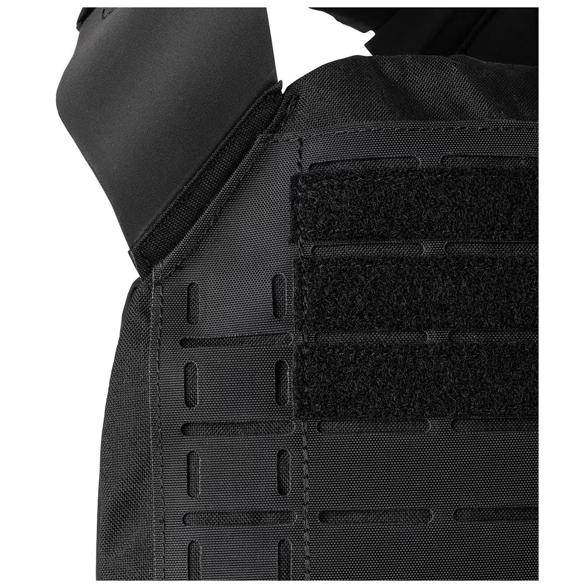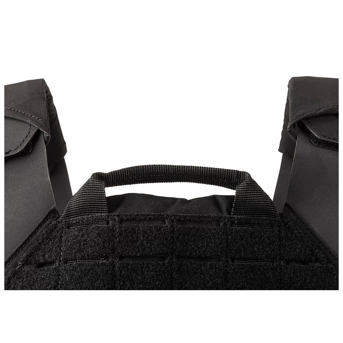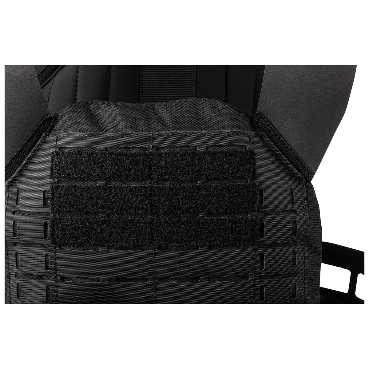 - Internal plate retention strap with hook/loop closure flap