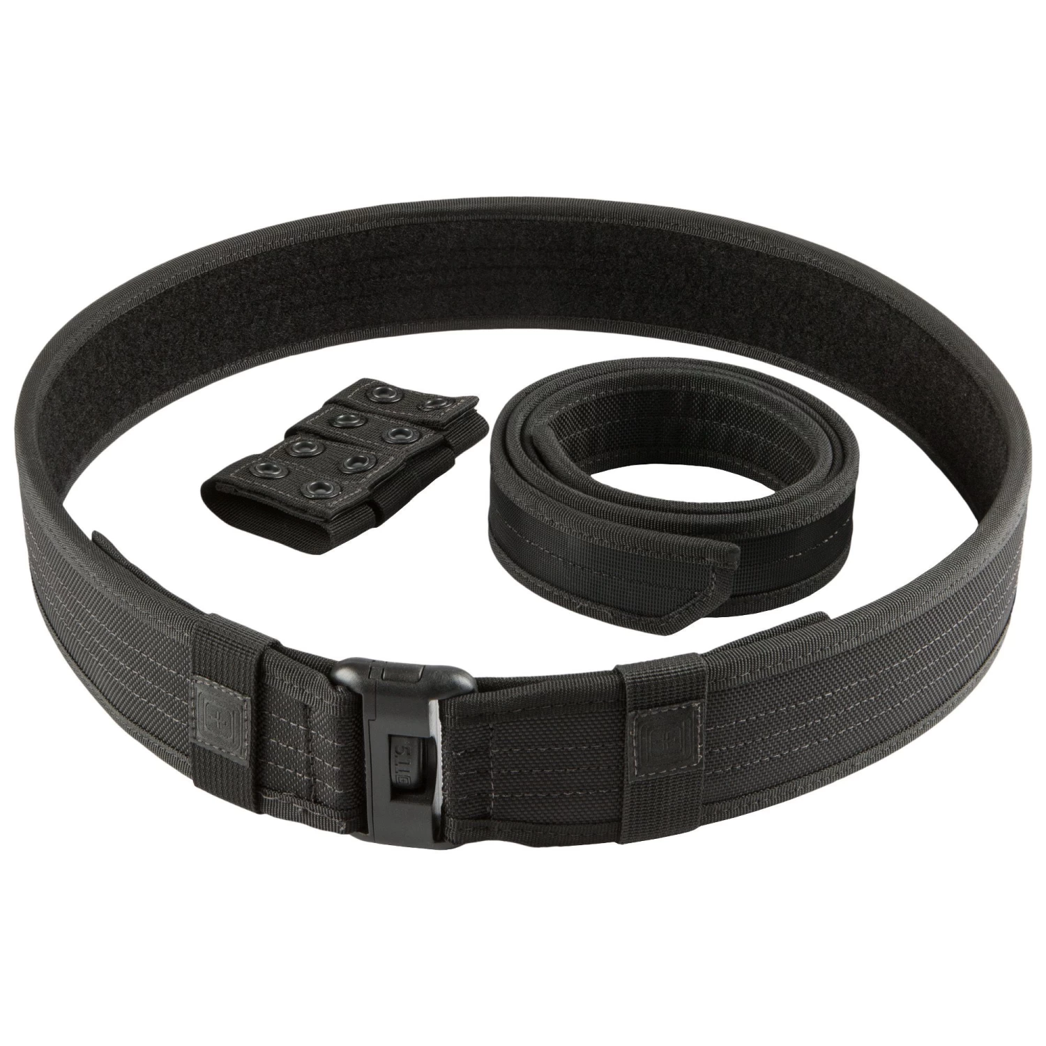 Keep your gear secure and your mind and back at ease with the 5.11 Sierra Bravo 2.25in Duty Belt. Developed with feedback from field officers, the Sierra Bravo Duty Belt Plus provides superior support and adaptability for your tactical loadout. Built from ultra-strong 1680D nylon, with a waterproof finish, the belt easily handles the rigors of daily wear. Featuring a dual-belt configuration and four dual-retention keepers, the belt keeps your gear firmly and comfortably in place during your shift, while MOLLE and TacTec Systemâ„¢ compatibility offer unprecedented flexibility.Â
