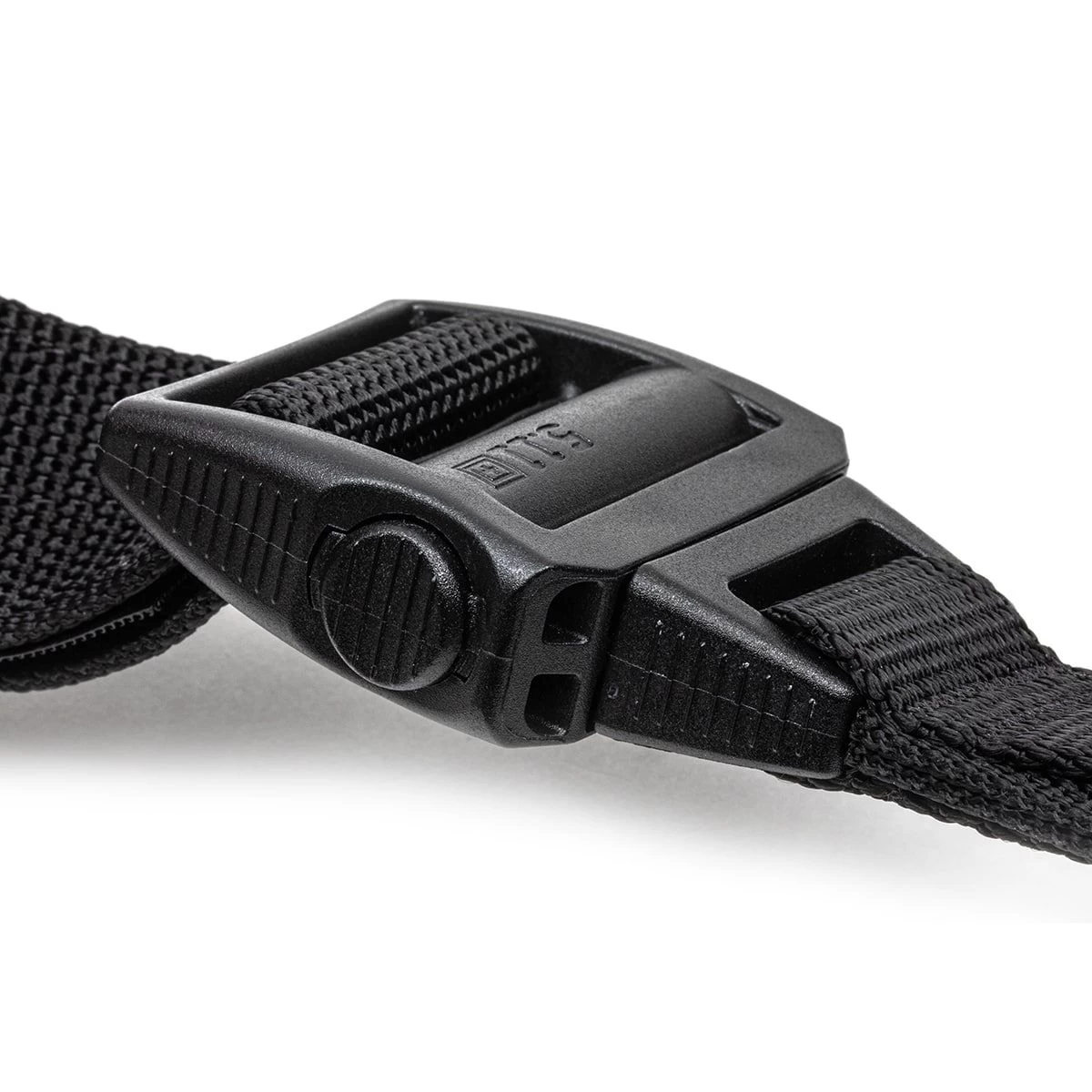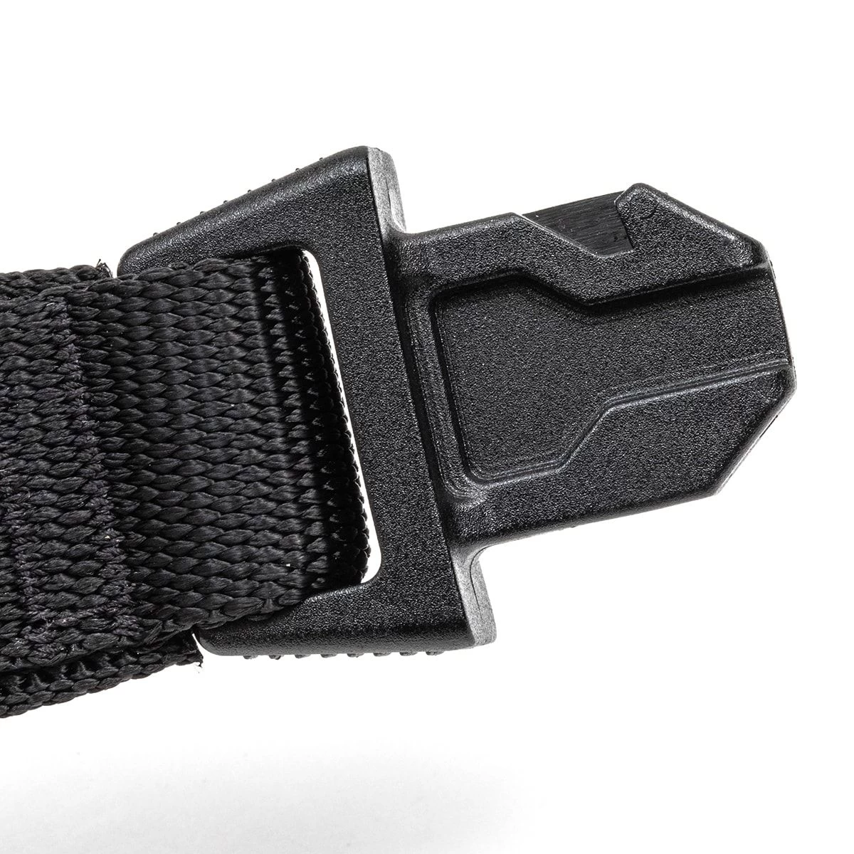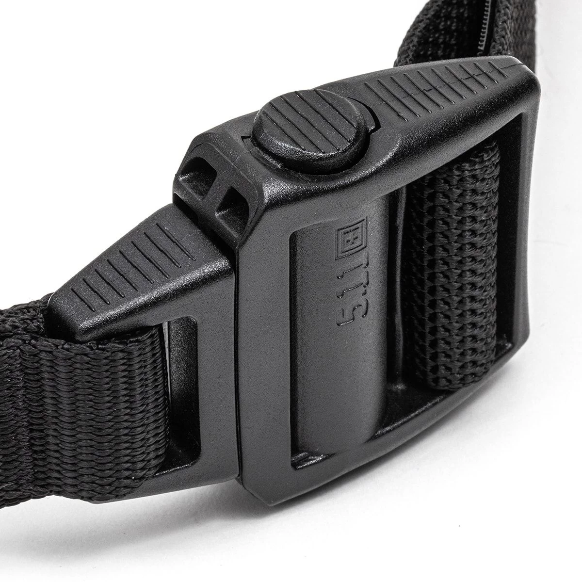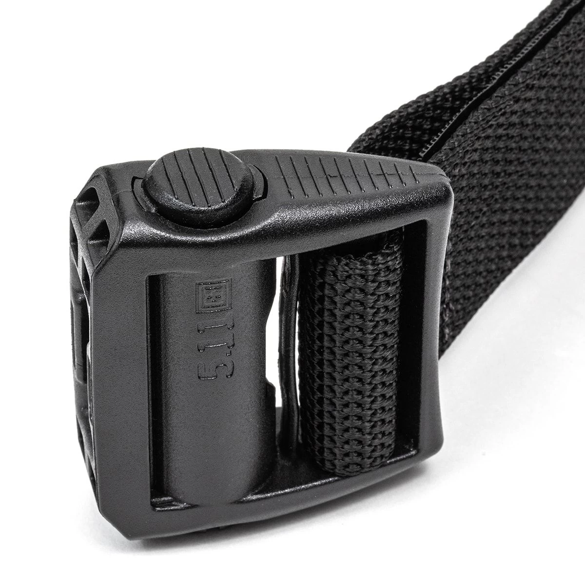 Light, sturdy, and completely non-metallic, the Skyhawk Belt secures with a carefully engineered, POM thermoplastic with a custom-designed dual-lock buckle for ease of entry into belt loops without removing the buckle. The belt itself is built with a double layer pre-curved nylon webbing with heavy bartacks and triple row stitch reinforcement. Because everyone wears their equipment (and their britches) differently, 5.11 have added some hook and loop for micro-adjustment.