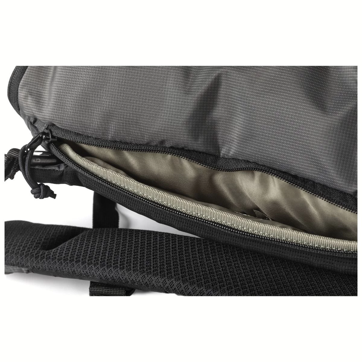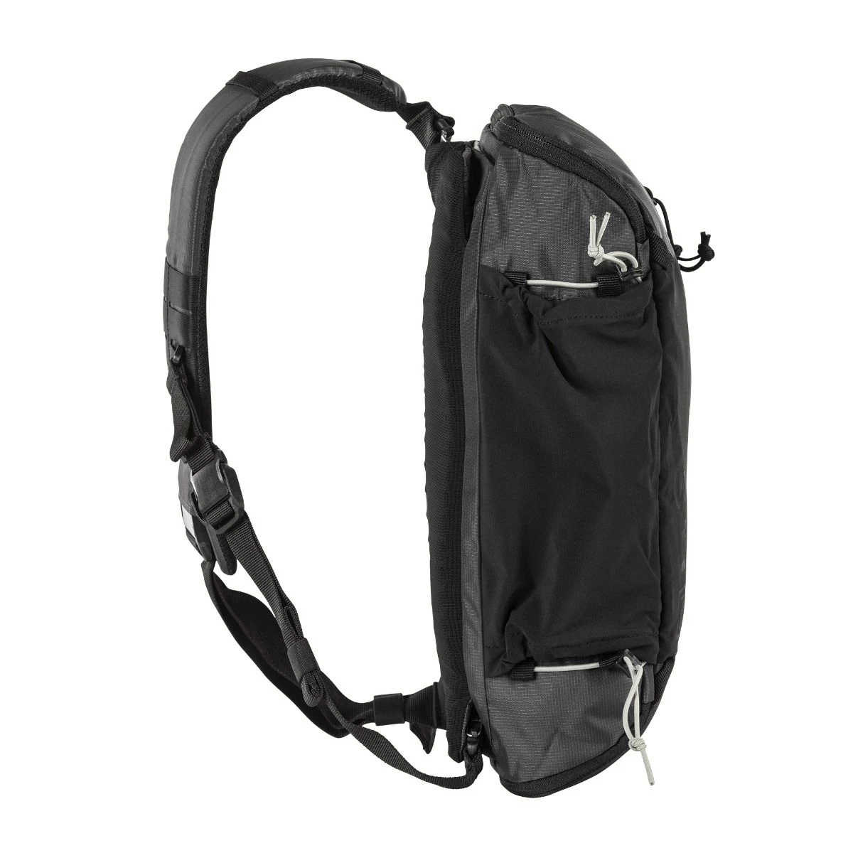 With the 5.11 Skyweight Sling Pack, your high-speed arrivals with gear in tow will be calm, cool, and collected. Ditching that load is fast, too, thanks to the ambidextrous, removable shoulder strap with a quick release buckle. A modular pass-through inside the back panel converts this rig into a lumbar pack when used with the Skyweight Hip Belt (sold separately). A sternum strap helps keep everything in place when you’re on the move. The 10-liter volume pack features laser-cut MOLLE for additional capacity, and it’s hydration compatible with most two-liter bladders. An external pouch ensures critical items are at hand and there’s another pouch outside for water bottles. Accessible from the top or side, the main compartment features rugged 330D Nylon construction backed by TAC-LAM® laminate to ensure the Skyweight Sling Pack won’t let you down.