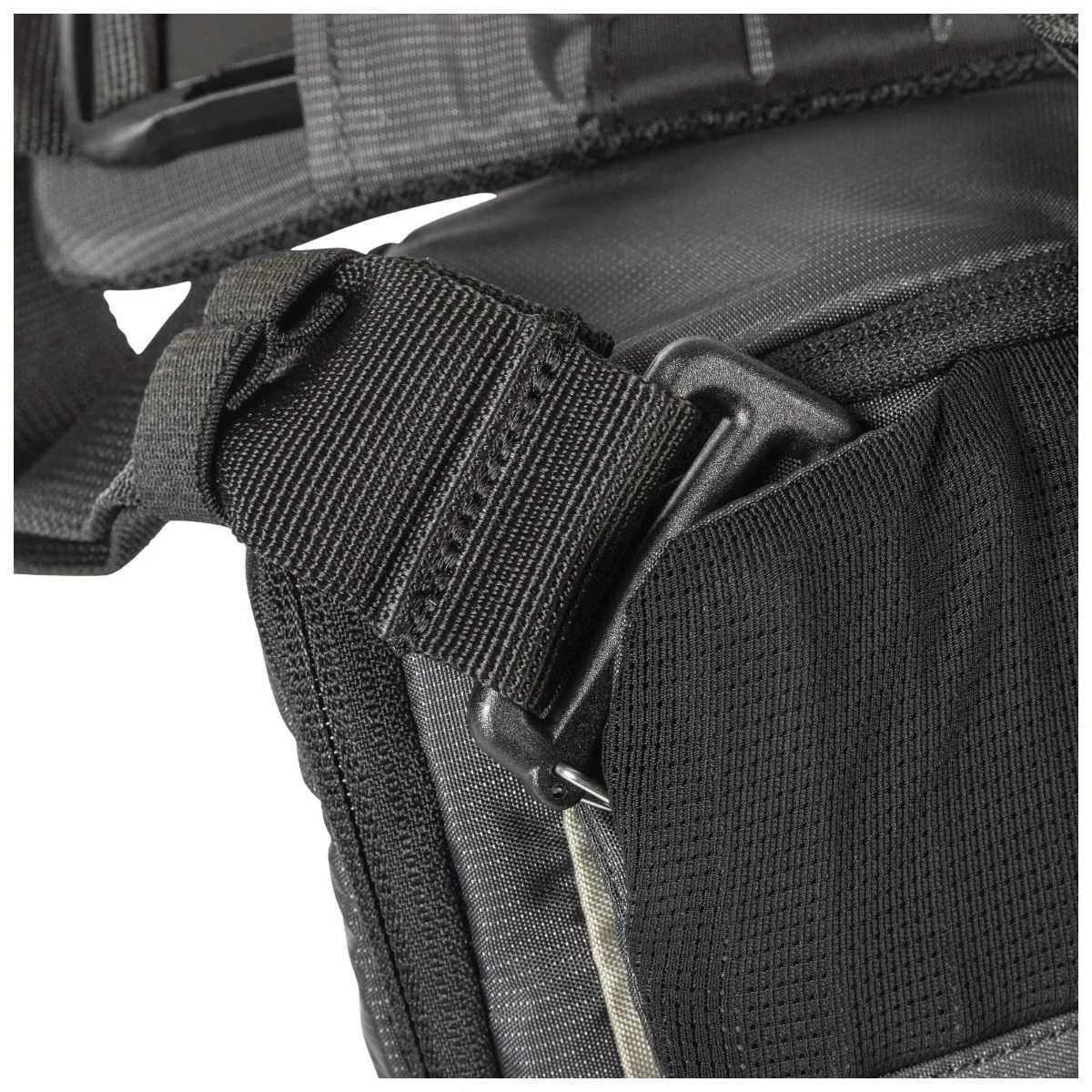 - Ambidextrous, removable single shoulder strap with quick release buckle, laser-cut MOLLE, sternum strap, and crossbody strap