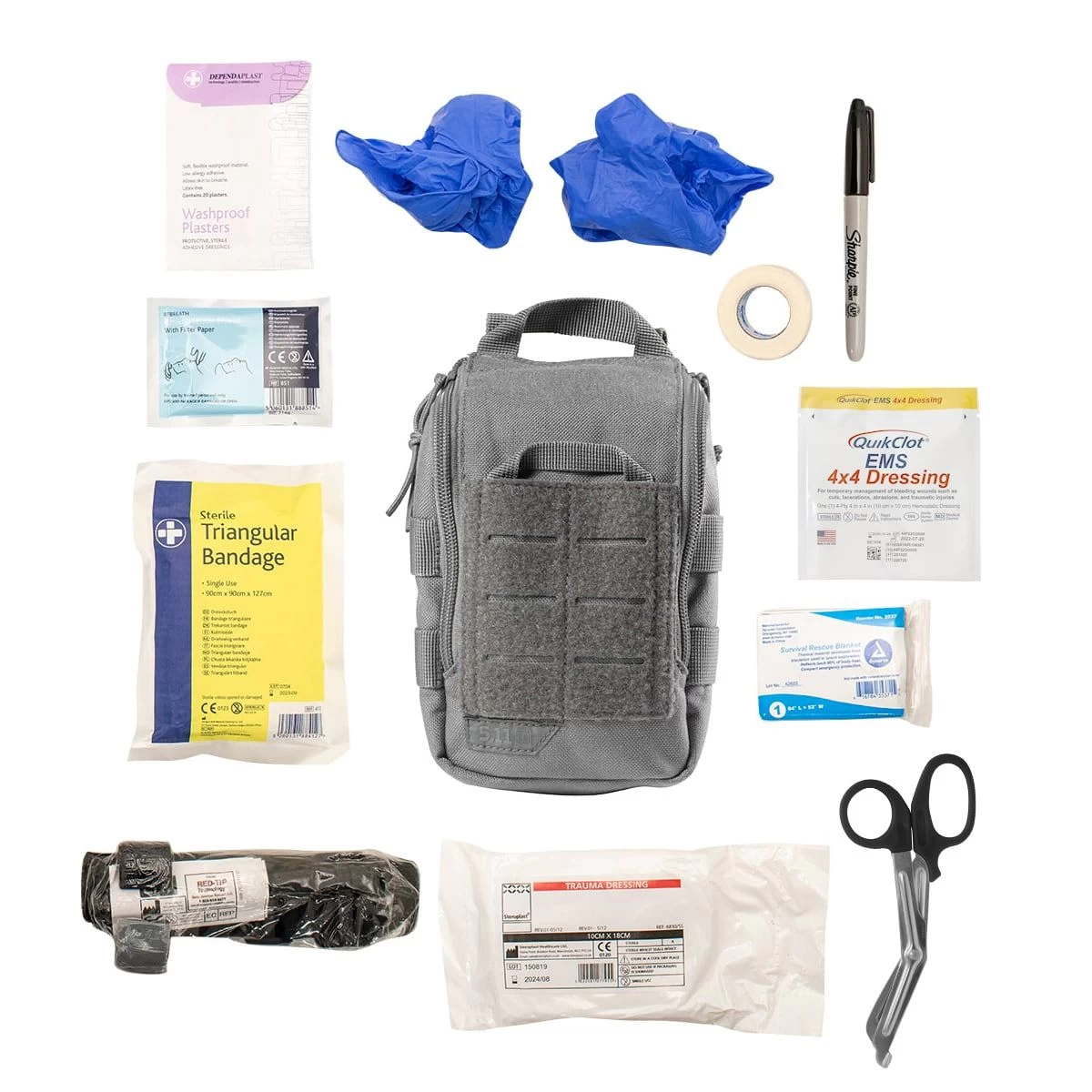 Designed to attach to your vehicle’s headrest or any MOLLE or web platform, 5.11’s UCR IFAK Pouch Kitted Medical Pouch (available in black, storm and sandstone) lets you keep a blow-out kit and medical essentials within arm’s reach. The pouch features a drop-down zipped compartment with a light-coloured interior for easy equipment identification and bungee tie-downs for added stability.Â