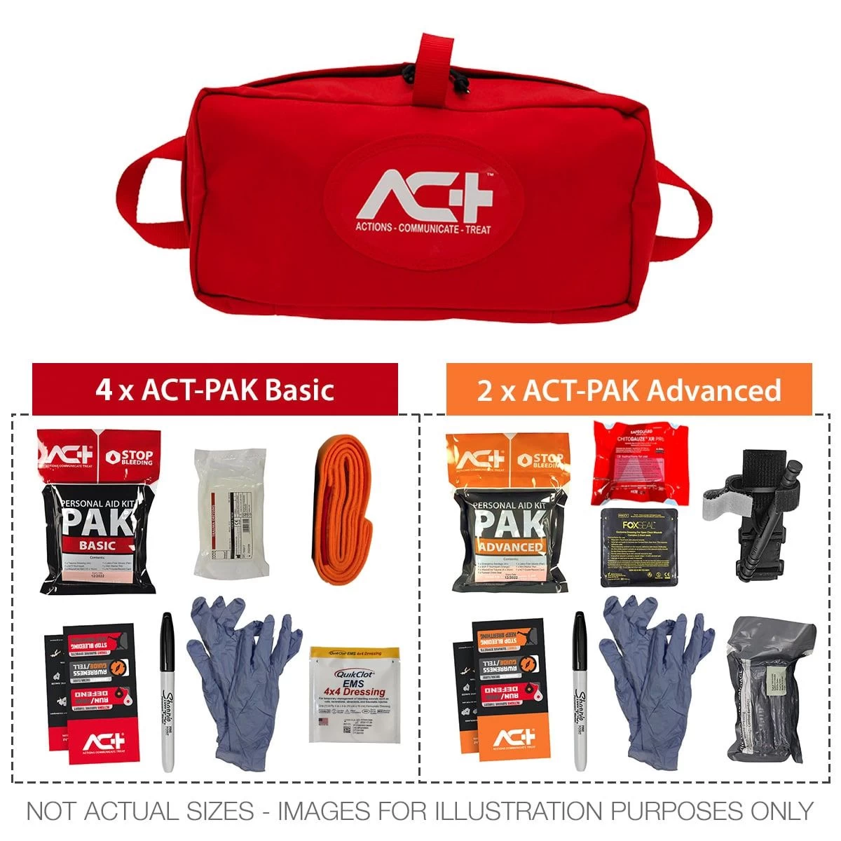 - 4 x ACT-PAK Bleeding Kit (Basic) –Â for use by non-trained personnel