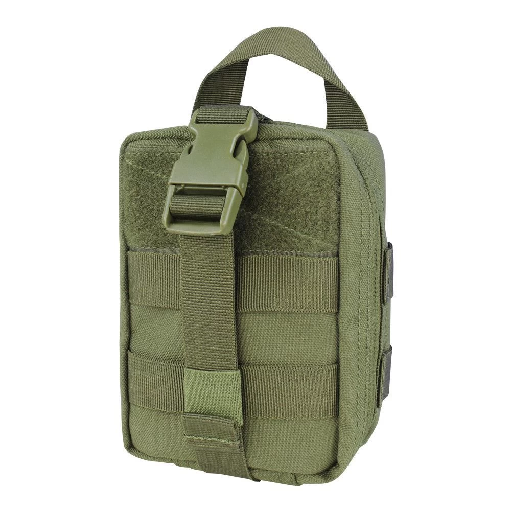 Easily access medical supplies in an emergency with the Rip Away EMT Lite Pouch from Condor Outdoor. The Condor EMT Lite is the redesigned personal version of the Condor Rip Away EMT Pouch, which was intended to treat multiple patients. This bag’s compact design is perfect for storing a complete first aid kit (IFAK) for a single person. Additionally, the outside MOLLE webbing can be used to secure various modular attachments, chem-lights, tourniquets, and other helpful accessories. Prompt deployment is a priority with this medical bag’s design, which includes a grab handle for tear-away transfers or loadout switching as well as a rapid access pull tongue to open the pouch. A hook and loop panel can be used to display an ID, and the zipper closure has dual sliders that secure your supplies within. Use this Condor EMT Lite first aid bag to keep medical essentials safely stored in a space-conserving kit.