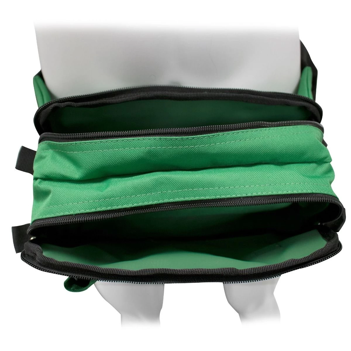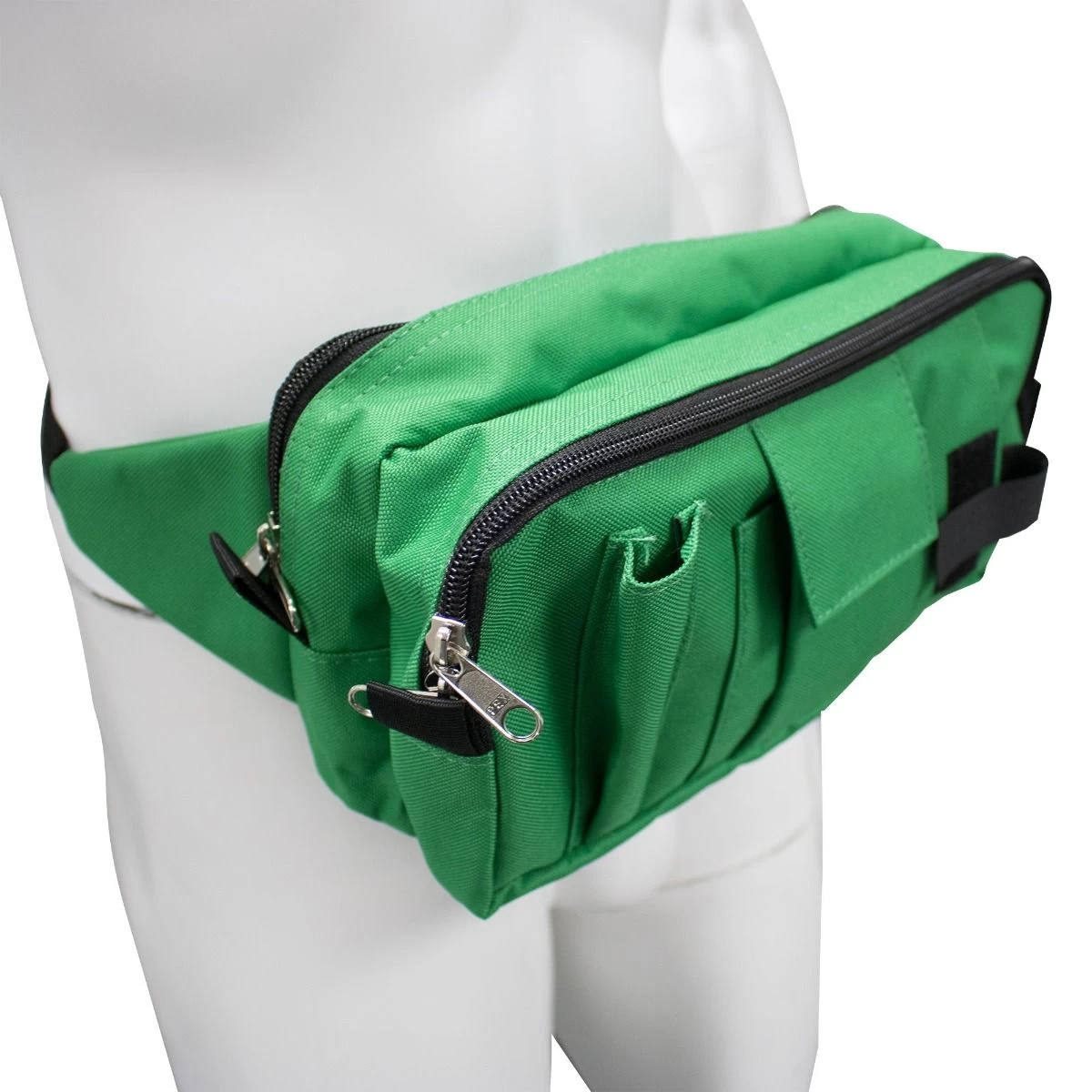 Hands Free Portability Durable waist pack is light enough to carry comfortably, but large enough to keep many of your important medical supplies within reach. Adjustable waist pack features two roomy outside pockets for gloves and shears & two roomy inside compartments to hold an assortment of first aid supplies. Made of durable 1000 denier nylon, the belt adjusts to fit 66 to 127cm waists.