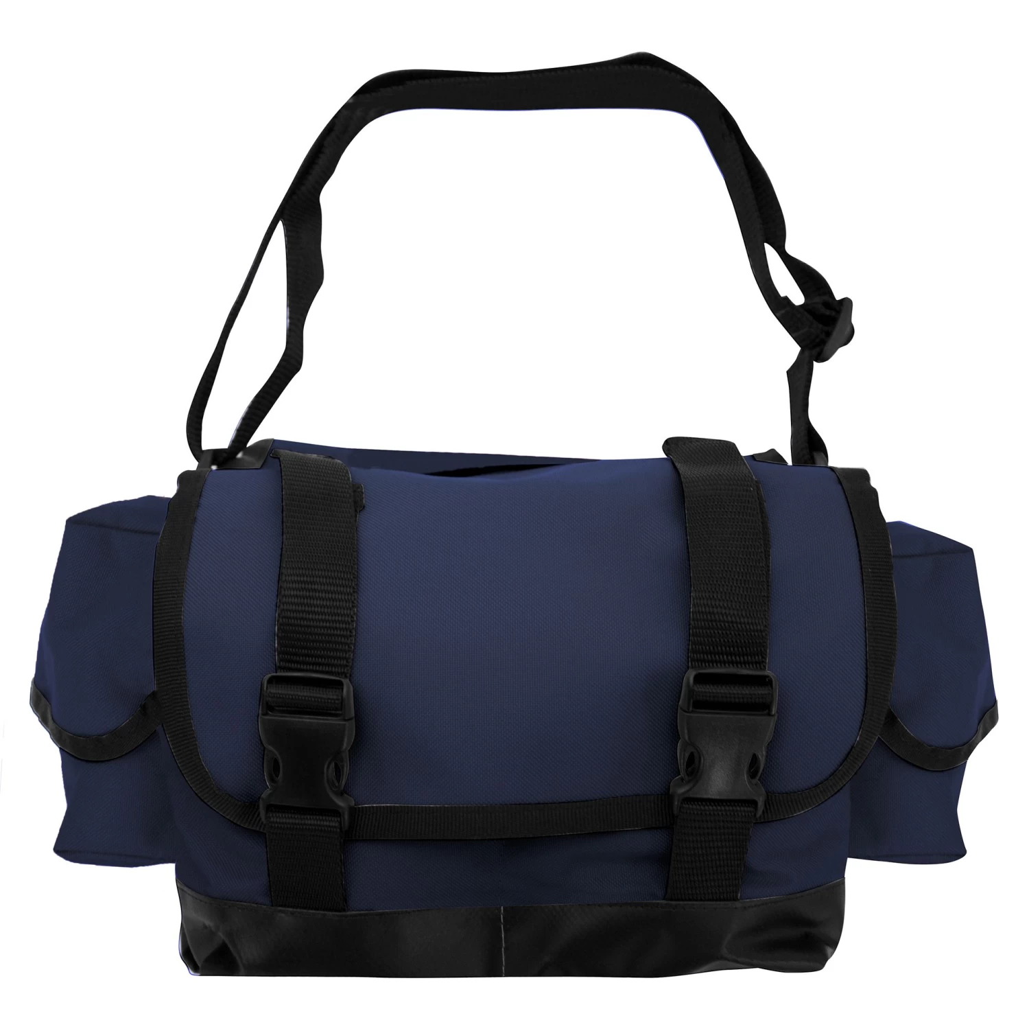 Now has a waterproof bottom to help keep your equipment and supplies dry. It has three adjustable inner compartments, two front and two side pockets. Elastic loops on inside of lid secure extra supplies or instruments. Handle and shoulder strap. Bag can also be turned into a waist pack.