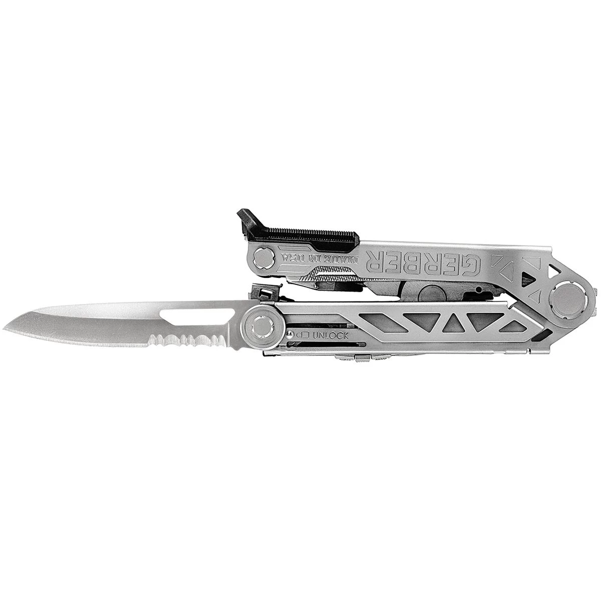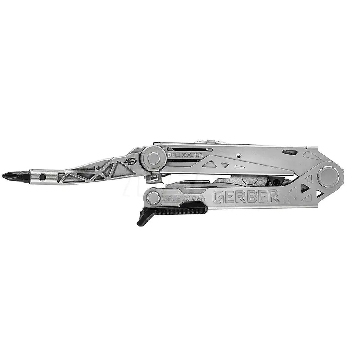The Center-Drive Plus from Gerber offers the uncompromising performance you’ve come to expect of your Gerber multi-tool. This upgraded Plus in Stainless Steel finish (supplied in a premium leather sheath with bit set) gives you more versatility with a pair of spring-loaded scissors, a 30% longer blade and a premium leather sheath so you can keep your tool with you at all times. The innovative driver sits on a center-axis to perform like a real screwdriver making your jobs easier and the one-thumb opening pliers save time in tricky situations. A powerful combination of tools, the Center-Drive Plus will be your first choice.The Center-Drive Plus offers the uncompromising performance you’ve come to expect of your Gerber multi-tool. The upgraded Plus gives you more versatility with a pair of spring-loaded scissors, a 30% longer blade and a premium leather sheath so you can keep your tool with you at all times. The innovative driver sits on a center-axis to perform like a real screwdriver making your jobs easier and the one-thumb opening pliers save time in tricky situations. A powerful combination of tools, the Center-Drive Plus will be your first choice.