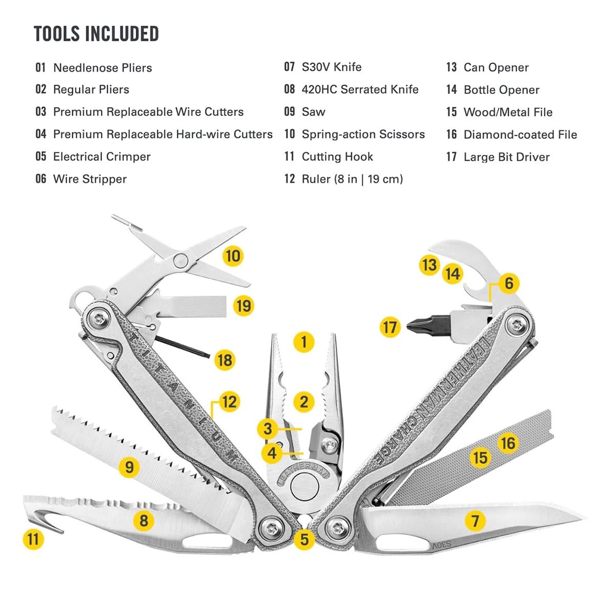 The ultimate Leatherman! The Leatherman Charge+ TTi is a combination of two best-sellers in the Leatherman range – the Leatherman Charge AL and Leatherman Charge ALX – but with the added benefit of comfort – sculpted titanium handles and the S30V® stainless steel clip-point knife known for its optimal combination of edge retention, flexibility and hardness. The Leatherman Charge is the first multi-tool with a cutting hook that slices through seat belts and linoleum just as easily as leather or canvas. Leatherman Charge TTi is the ready for any emergency job or adventure.