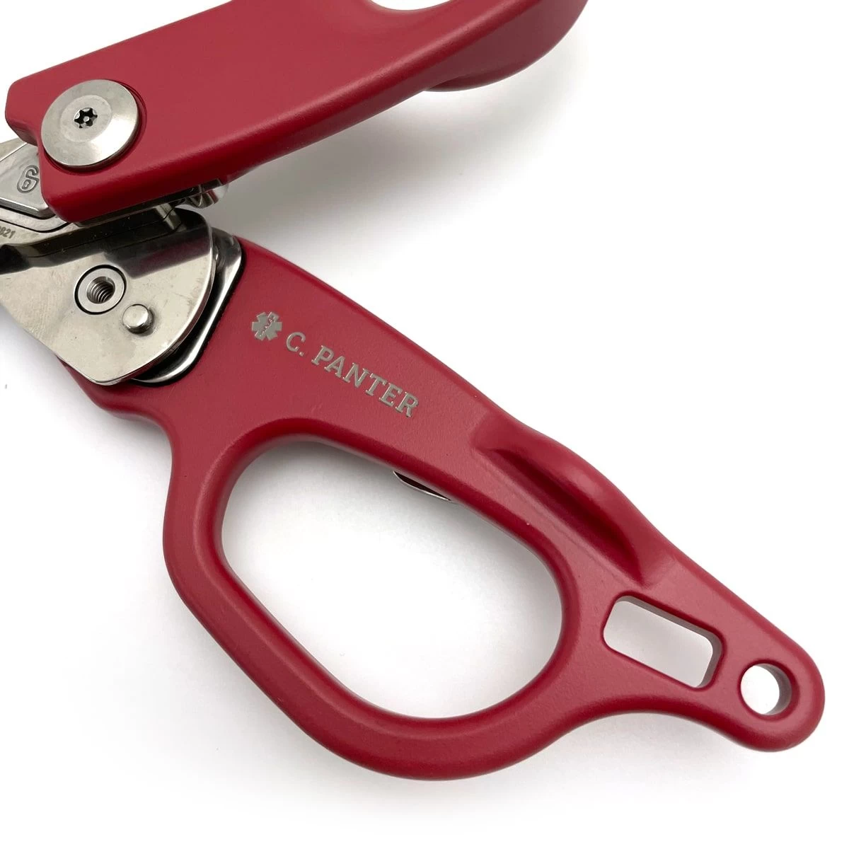 Micro-serrations on the inner blade have been added to stop fabrics from slipping while you work. Other features include a ruler, ring cutter and oxygen tank wrench for emergencies.