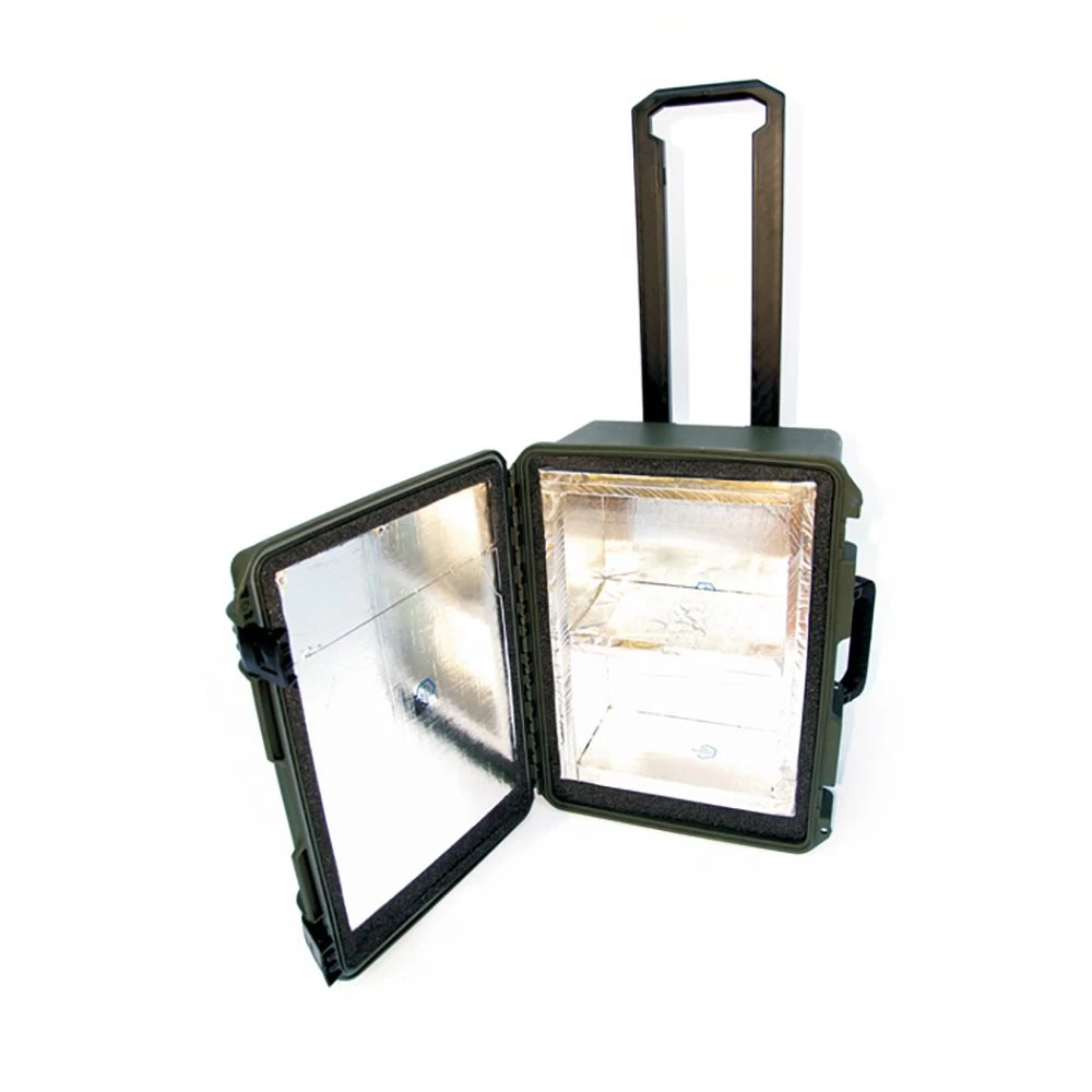 The LifeBox 50 is designed for the First Responder to transport anything he needs that is temperature sensitive; without having to worry about a heavy, tethered powered unit. The Responder is not restrained by temperature changes over time. The LifeBox 50 is able to maintain its core temperature for unprecedented durations in the most extreme ambient conditions. This unit could hold several 1 liter IVs at temp for over 50 hours, or store your Meds in it to keep safe in hot or cold conditions. Superior insulation, combined with rugged cases for protection, make it the number one choice for any medic.