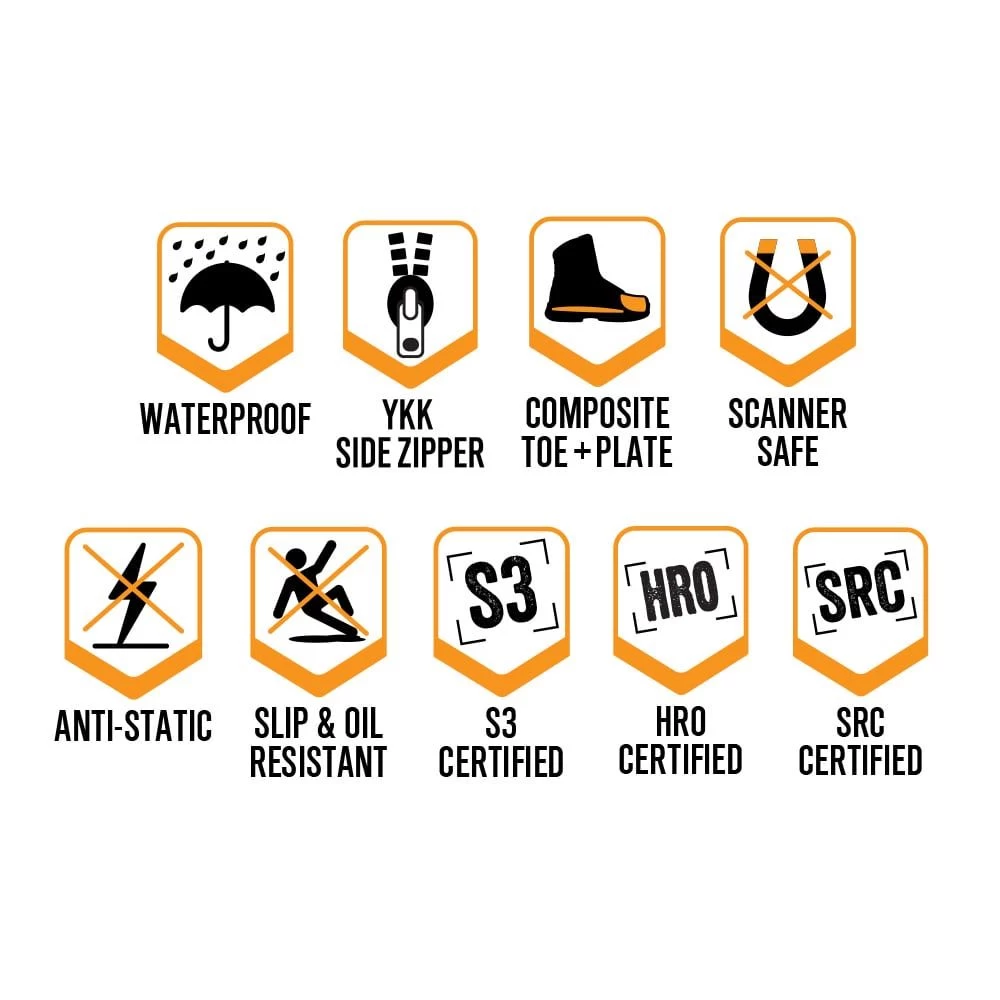 Tested & Certified to European Standard EN ISO 20345:2011 S3 HRO WR SRC. These waterproof work safety boots for men are a great choice for utility workers including plumbers, electricians and engineers.