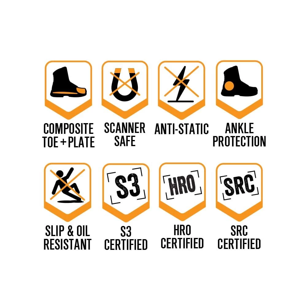 Tested & certified to European Standard EN ISO 20345:2011 S3 HI CI HRO AN SRC. These men’s and women’s uniform safety boots are an ideal choice for industrial workers, emergency medical services and fire and rescue personnel who need a comfortable, durable safety boot.
