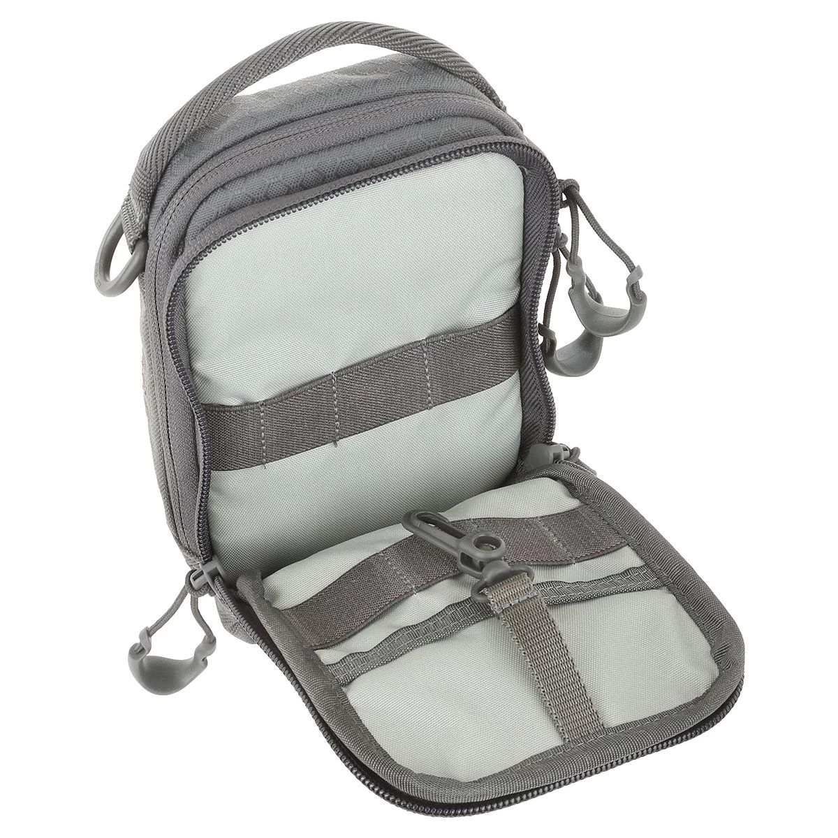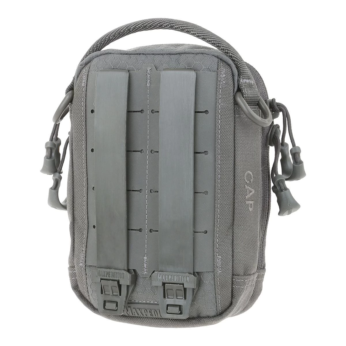 The Maxpedition CAP Compact Admin Pouch is a low-profile pouch when empty, yet expands to fit mission critical items. The front compartment features elastic organizers, an extra pocket, and a plastic keyfob to securely hold key rings. The interior main compartment of the Maxpedition CAP Compact Admin Pouch has a visible grayscale interior, additional elastic organizers and pockets for storage. The CAP also comes equipped with two (2) TacTie PJC5 Polymer Joining Clips for modular attachment to any AGR or legacy pack.
