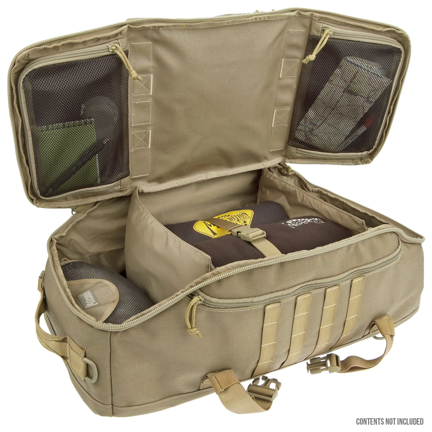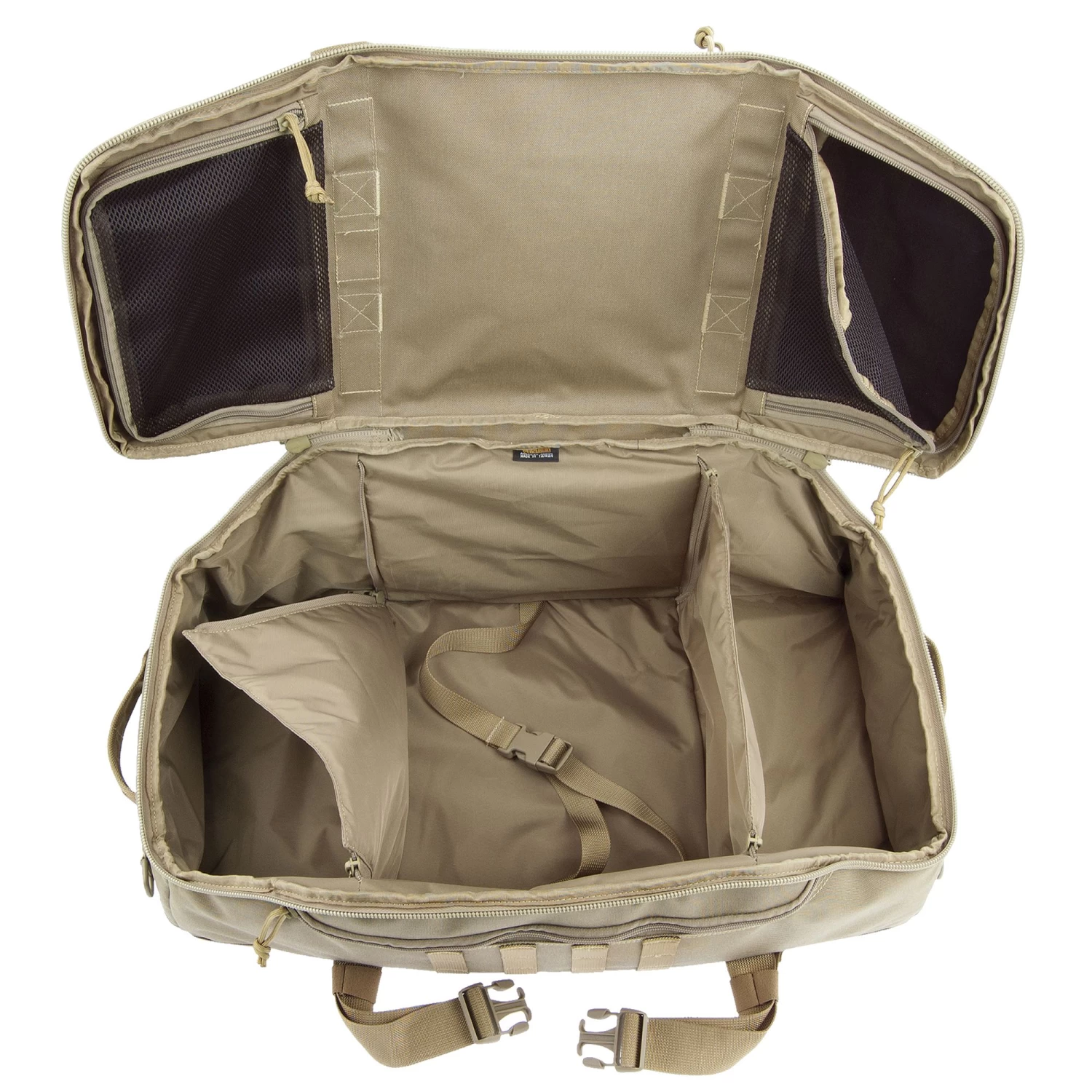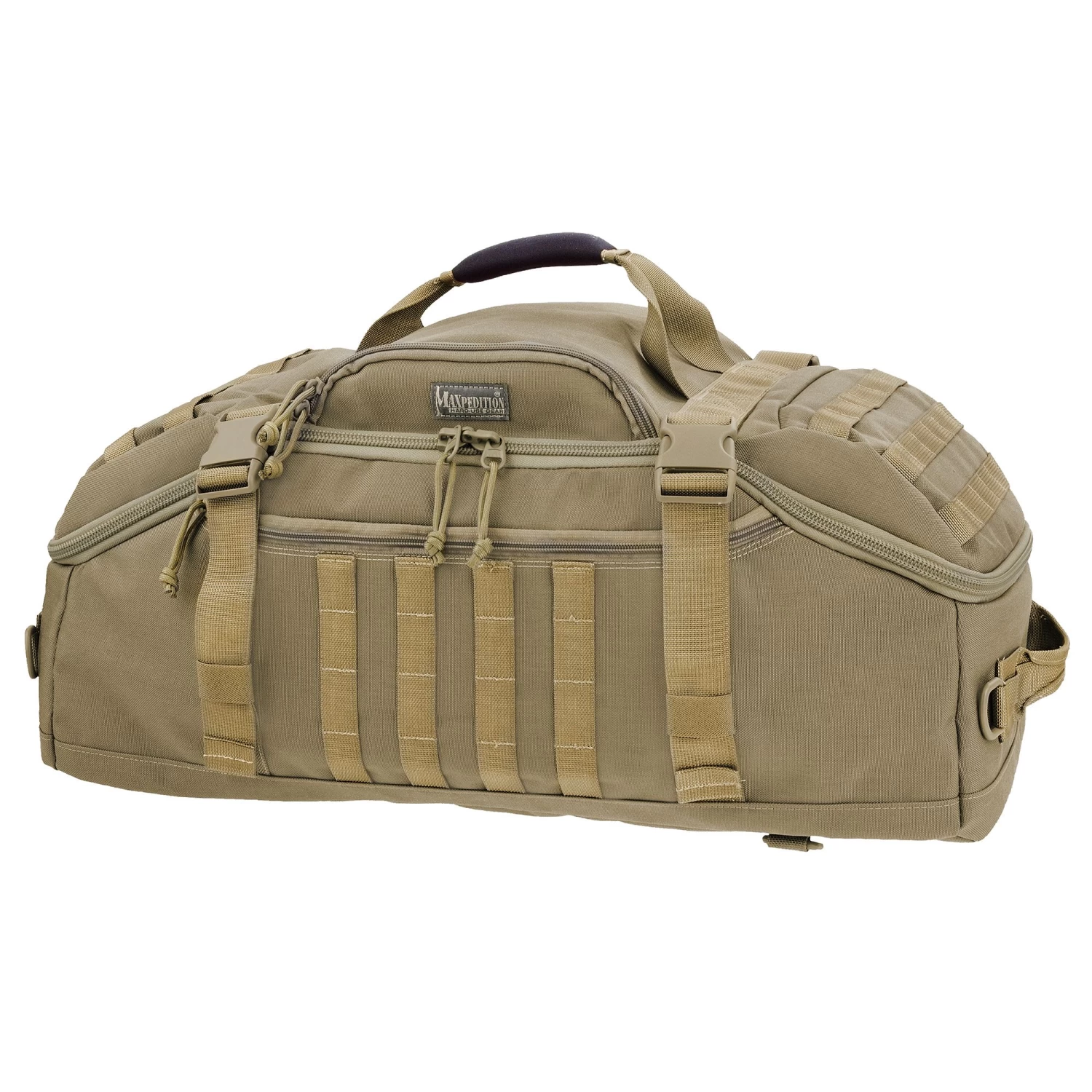 Large travel bag that can be carried by hand, shoulder strap or concealable backpack straps. The DOPPELDUFFELâ„¢ Adventure Bag from Maxpedition is a unique travel bag that can be carried by hand, by shoulder strap (in 2 orientations), or by it’s concealable ergonomic backpack straps. Multiple pockets, pouches, and compartments offer plenty of space and organisation, and the main interior is equipped with 2 padded dividers for splitting the main compartment into smaller sections.