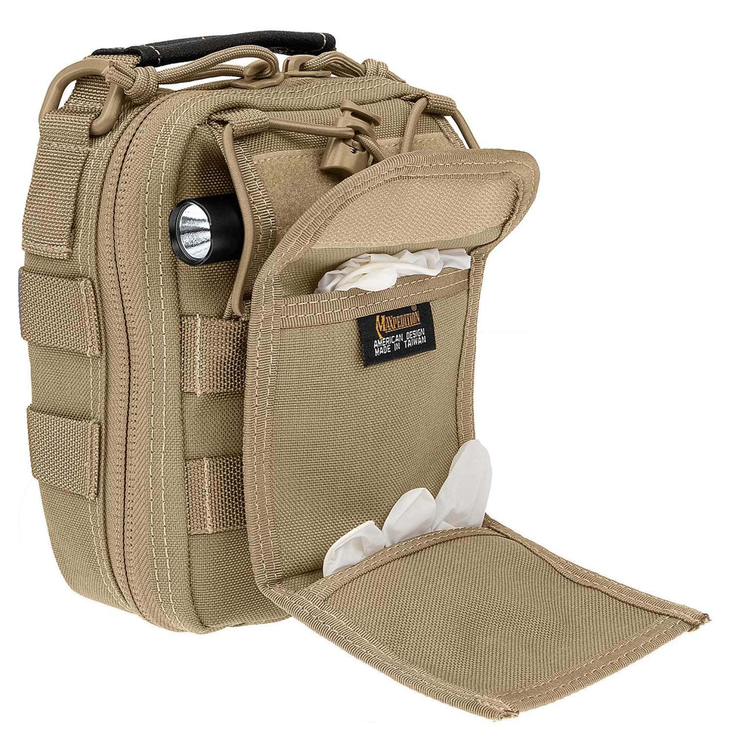 The FR-1 Combat Medical Pouch from Maxpedition is a specialised medical pouch with an adjustable interior. It’s design evolved from a first aid kit bag with added versatility and can be used as a general purpose organisational pouch or even a specialised medical pouch. Both front and back halves have layered pockets topped with a wide array of elastic loops, essential for keeping contents in place. The full zipper clamshell opening can be fine tuned to various angles using a paracord adjuster plus the FR-1 has a Torch-Lairâ„¢ in front with bungee cord compression.