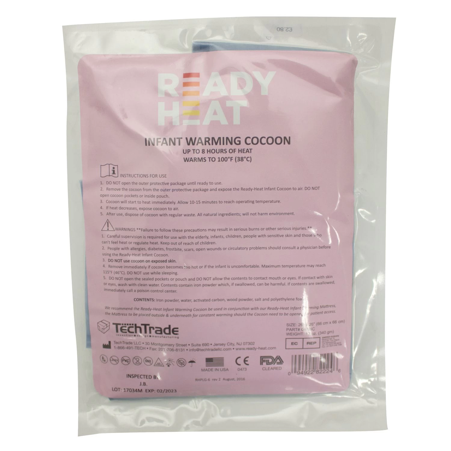 Ready-Heat™ offers a convenient, ready to use blanket that remains warm to 104° Fahrenheit (40° C) for approximately 6-8 hours