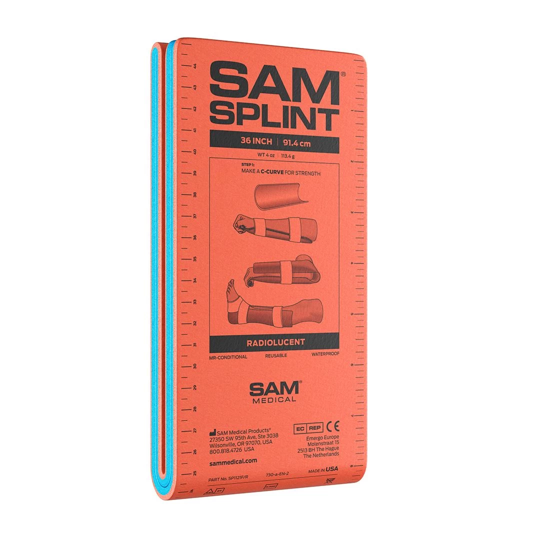 Available in 3 different sizes, the SAM® Splint is Waterproof, Reusable, Lightweight and compact with excellent radiolucent properties. Can be rolled or folded for easy storage and simply fastens in place with tape. The SAM® splint works effectively underwater and is not affected by extreme temperatures or altitudes.