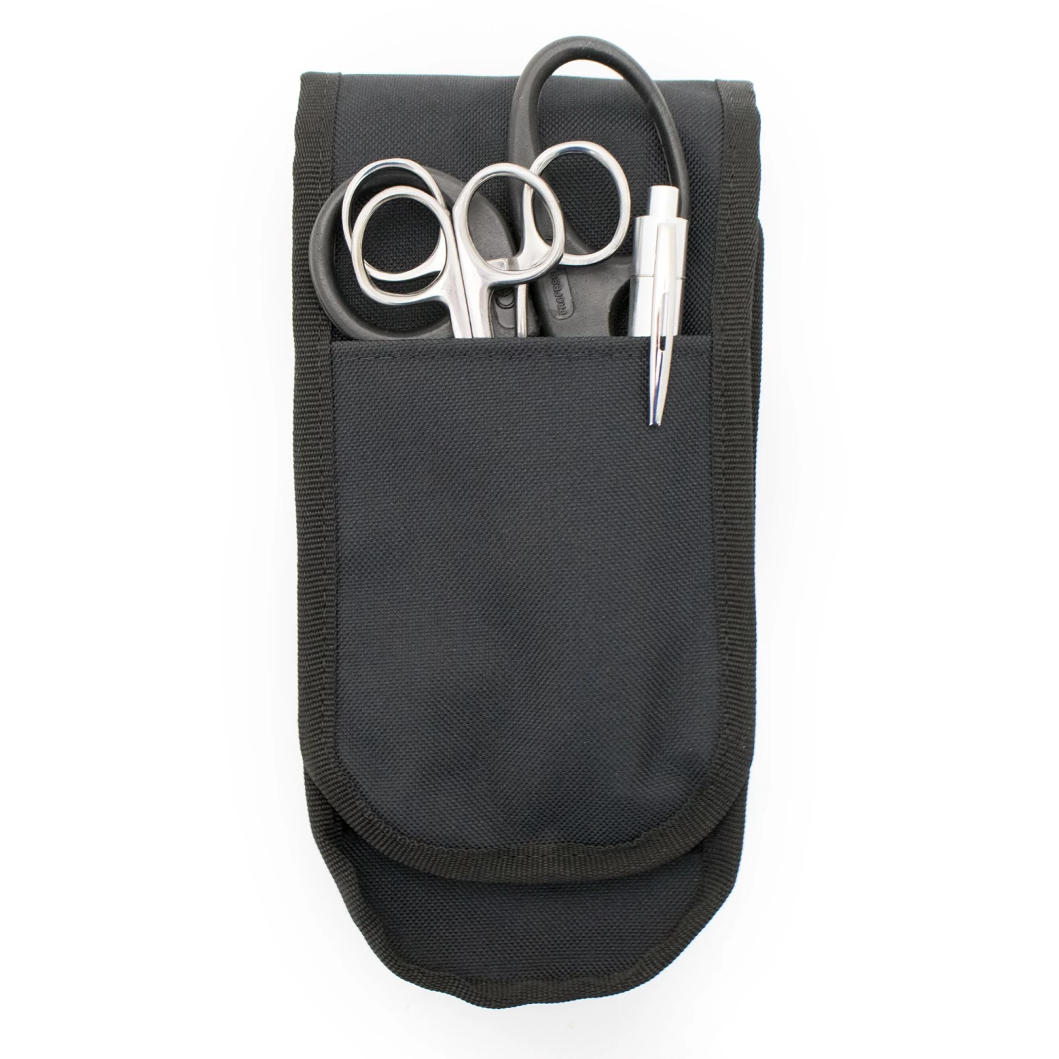 The Stealth EMS Holster (Kitted) black nylon belt holster with a front pocket for gloves. Fits belts 5.7 cm wide.