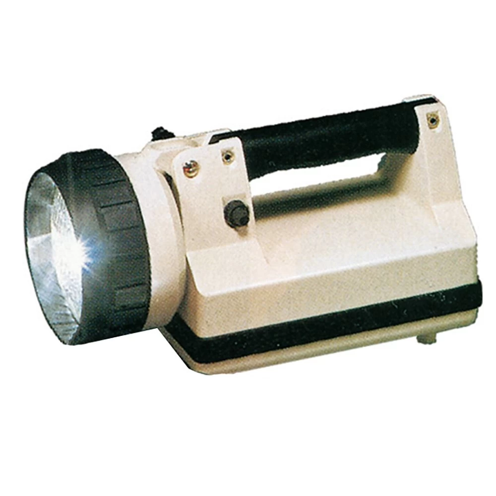 Portable emergency lighting system is rechargeable. Halogen sealed beam lamp is similar to those used in cars. Provides powerful illumination. High impact ABS plastic case. Neoprene-cushioned feet absorb shock, resist slipping. Nickel-plated hardware. Solid state circuitry automatically recharges lamp in home or vehicle. Wall or vehicle mounted. LED charging indication. Includes charging rack. SL-40XF fire system model comes complete with truck mountable hard-wire charge rack and carrying strap. Available in orange only.