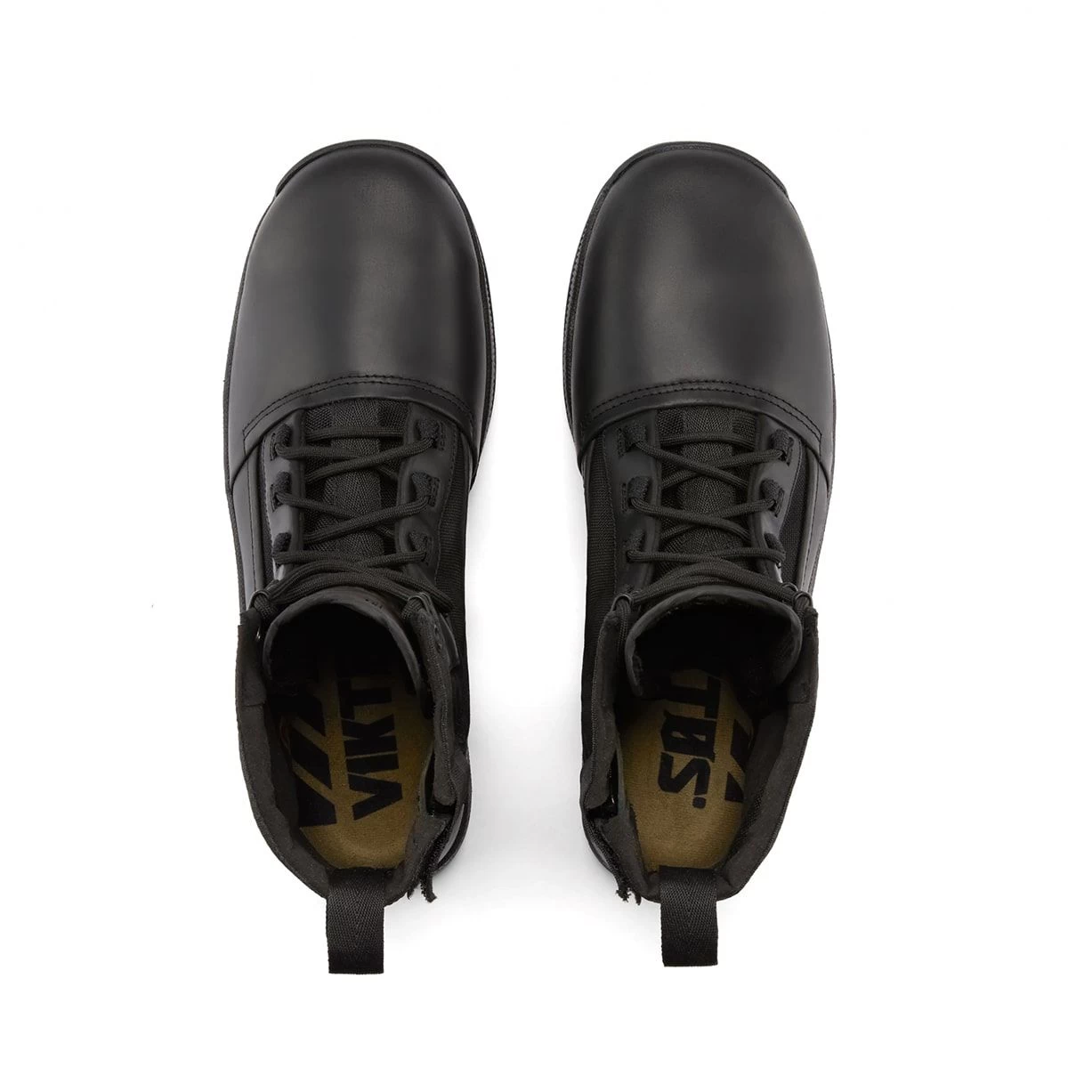 Don’t let its mid-height and lightweight fool you; the men’s VIKTOS Armory Mid boot in Black is the perfect fit for work or duty. Built around our proven Core shoe foot shape, the Armory mid feels like an athletic shoe but performs like a tactical boot. Key features include easy-entry medial zipper, performance synthetic leather upper, slip & oil-resistant outsole, and hi-rebound EVA midsole for premium comfort. Functional footwear performance with modern tactical styling.