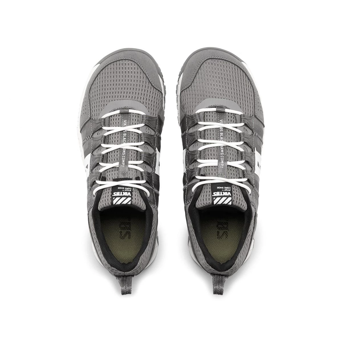 Straight from the riggers room comes our inaugural entry into the fitness footwear foray, the VIKTOS PTXF Core Greyman training/gym shoe. Built with the same techniques as top-line plate carriers, the upper blends lightweight mesh with reinforced synthetic overlays, all providing the ultimate grace under pressure. A wide forefoot allows foot splay under the crushing weight of your hero lift, while our Pararigger™ sidewall wraps provide lateral support when the prescribed event goes sideways. The undercarriage is built on the Viktos® mobility bottom, engineered for maximum stability and traction, with just enough cushioning to blast out some quick cardio. In fact, the only activity the VIKTOS PTXF Core shoe won’t do is take a knee.