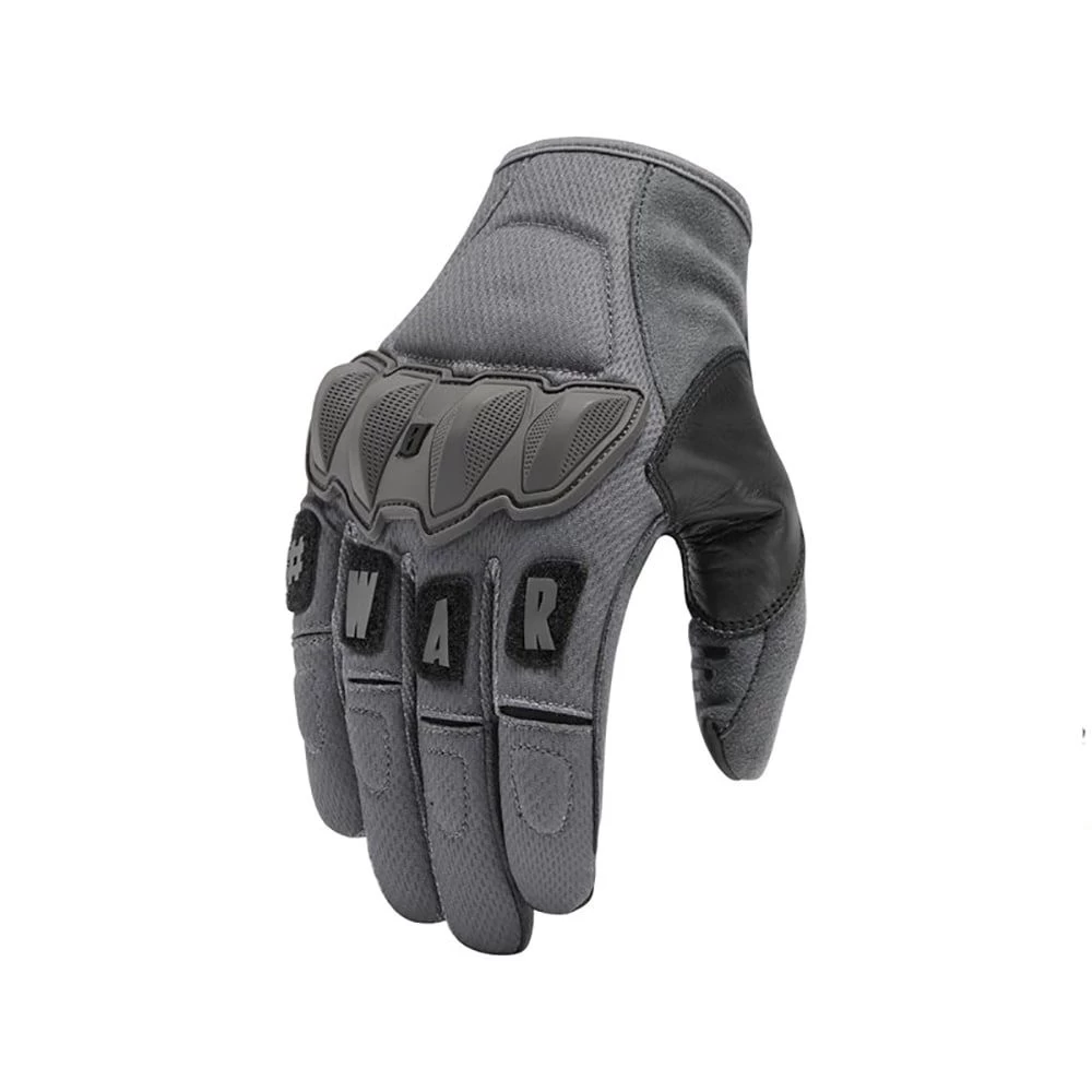 The range is littered with would-be tactical shooting gloves that have failed to live up to a weekend of training. Blown seams, shredded palms, failed fingers all tell a sad tale of handwear woe. The WARTORNâ„¢ glove was designed to overcome these points of gear failure while adding additional service and functionality. The thumb valleys are reinforced with Combative Leatherâ„¢ to defeat the aggressive checkering of modern polymer handguns. Reinforced fourchettes on the trigger and middle finger prevent premature gusset failure. Silicone printing on all fingers provides increased grip on slides–regardless of weather, while the trigger finger and thumb are touchscreens compatible. A full-sized polymer knuckle provides backhand protective coverage while segmented finger knuckles allow for increased flexibility. The integrated loop knuckle pads allow attachment of MORALPHABET™ accessory letters (sold separately), so you can sound off without ever saying a word.