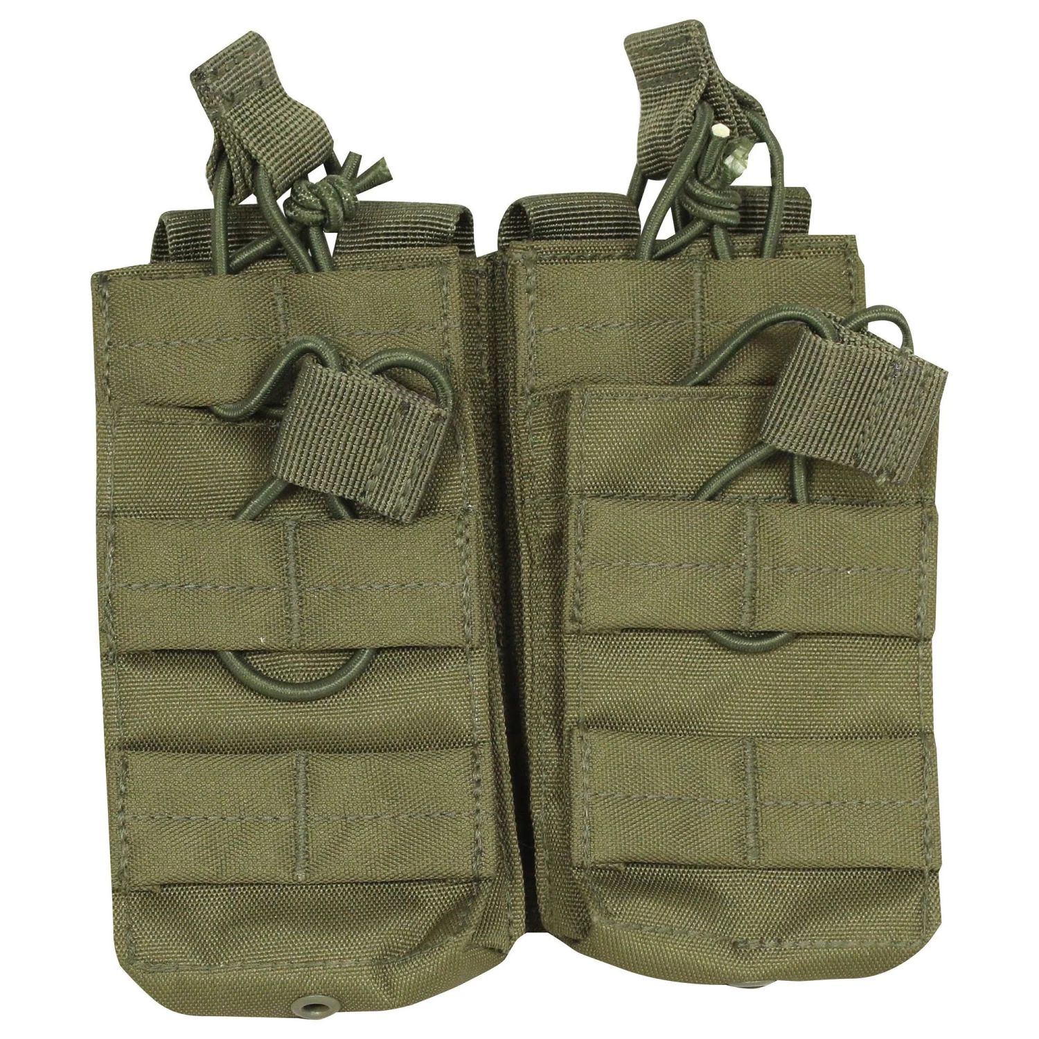 The Viper Tactical Double Duo Mag Pouch fits four magazines in total and enables the user to stack these magazines on most MOLLE panels. The 600D Cordura enhances the smooth functionality while magazines are securely held by quick release bungee retainers. The pouch is finished with drainage holes on both pockets.